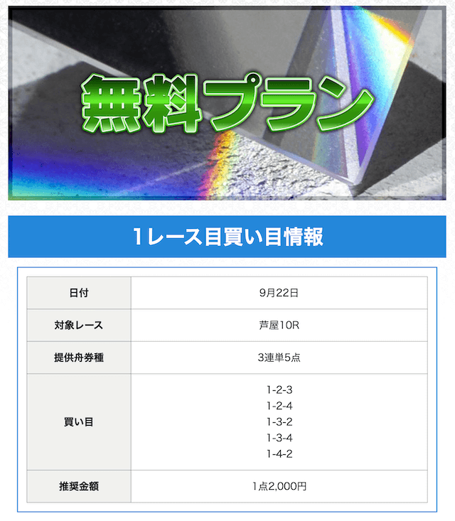 登録特典の10,000円分のポイントって地味にでかいんよな〜!お試しプランのアイアンⅠなら8,000円だから実質無料で参加できるよ!有料予想に参加したことない人いたら、試してみるといいよ〜。