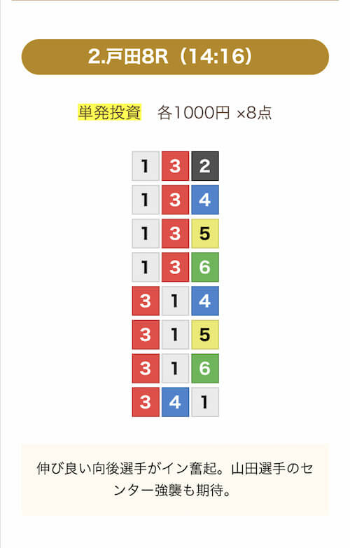 無料予想を前半・後半に別けて公開してくれるから、自分の時間に合わせて利用しやすい!
