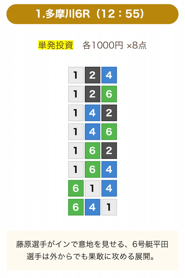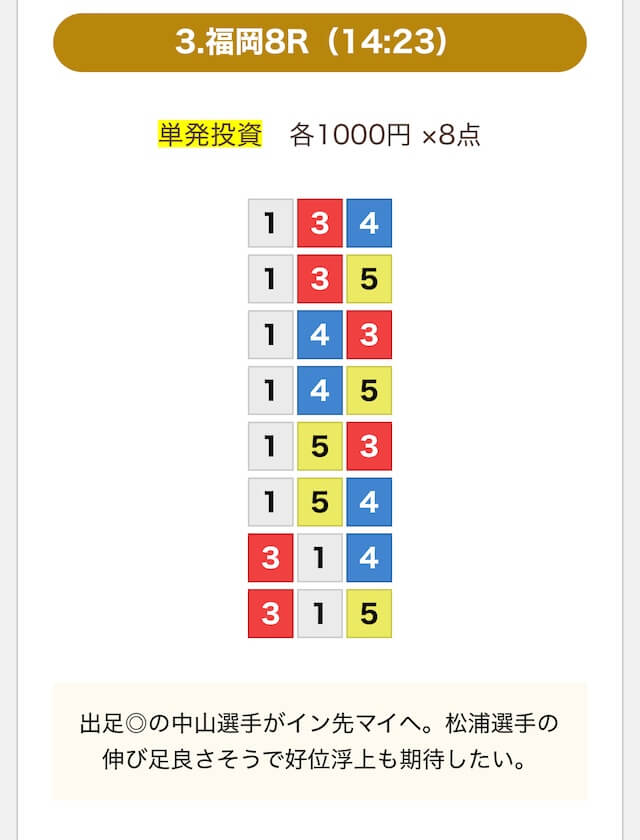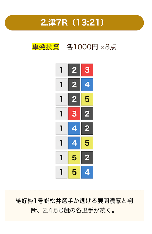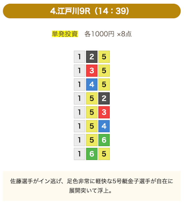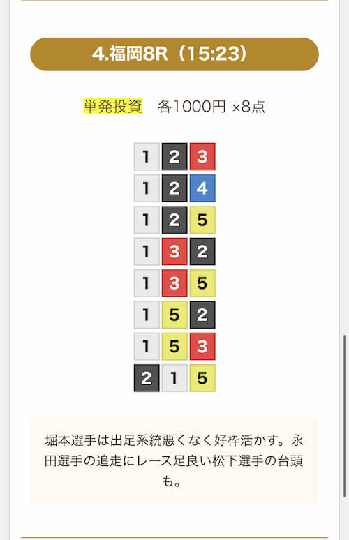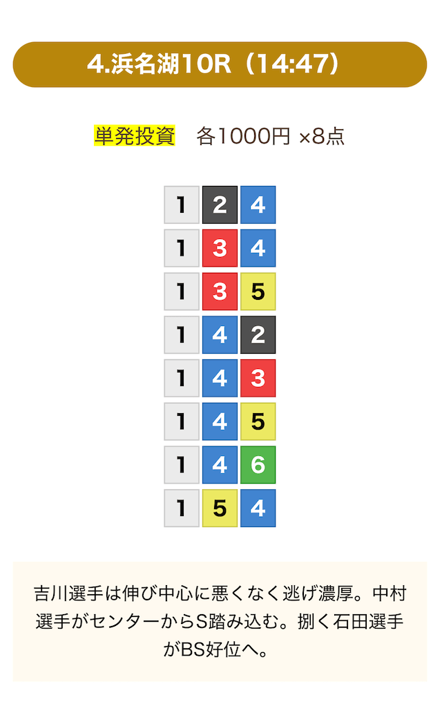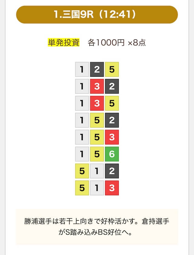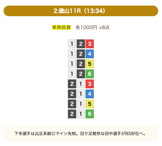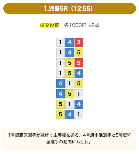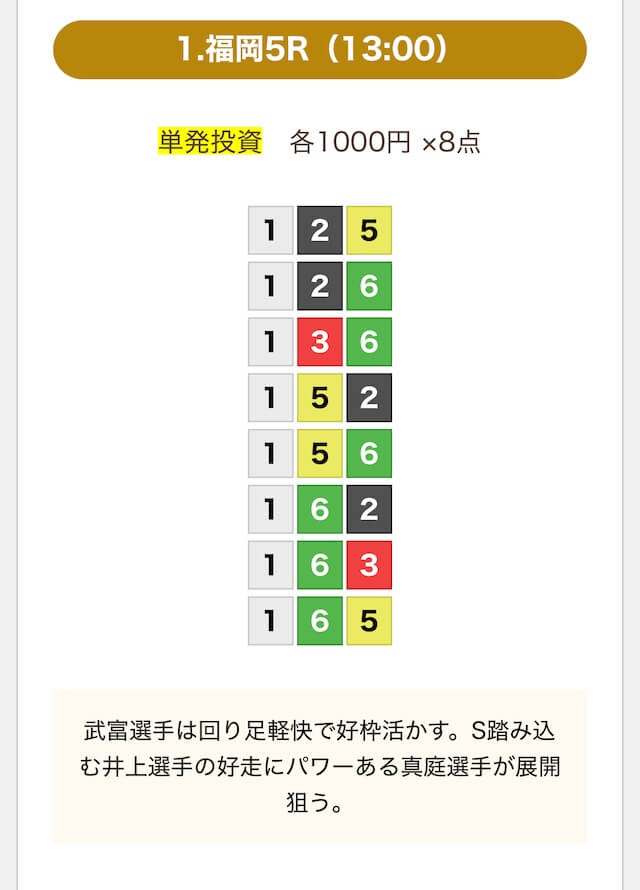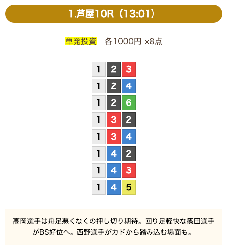 8点の買い目で結果を残し続けるってやばない?3連単って120通りだぜ!?8点の買い目だったら確率としては6%ぐらい?おれだったら絶対に無理w15点でやっと当てれるかなってぐらいww