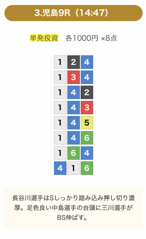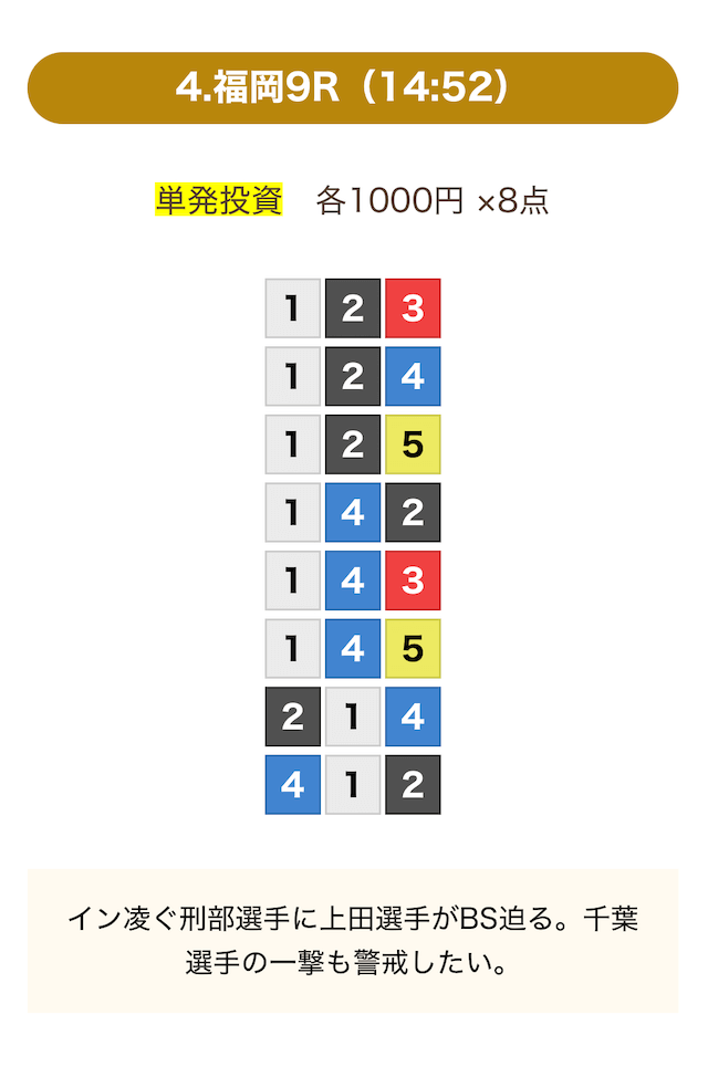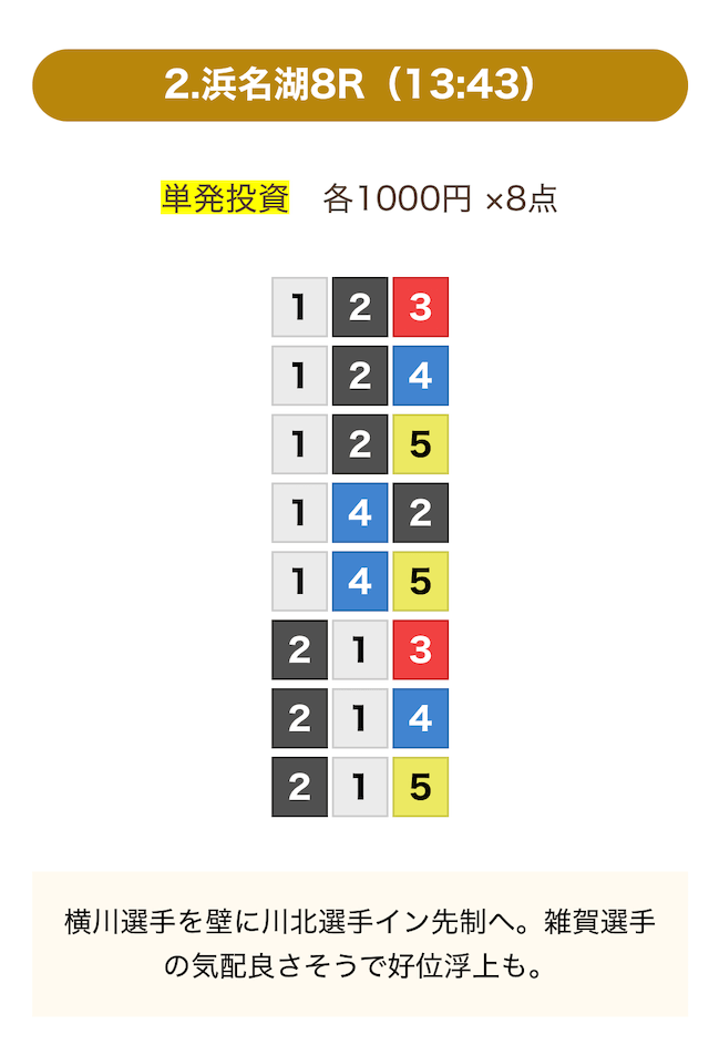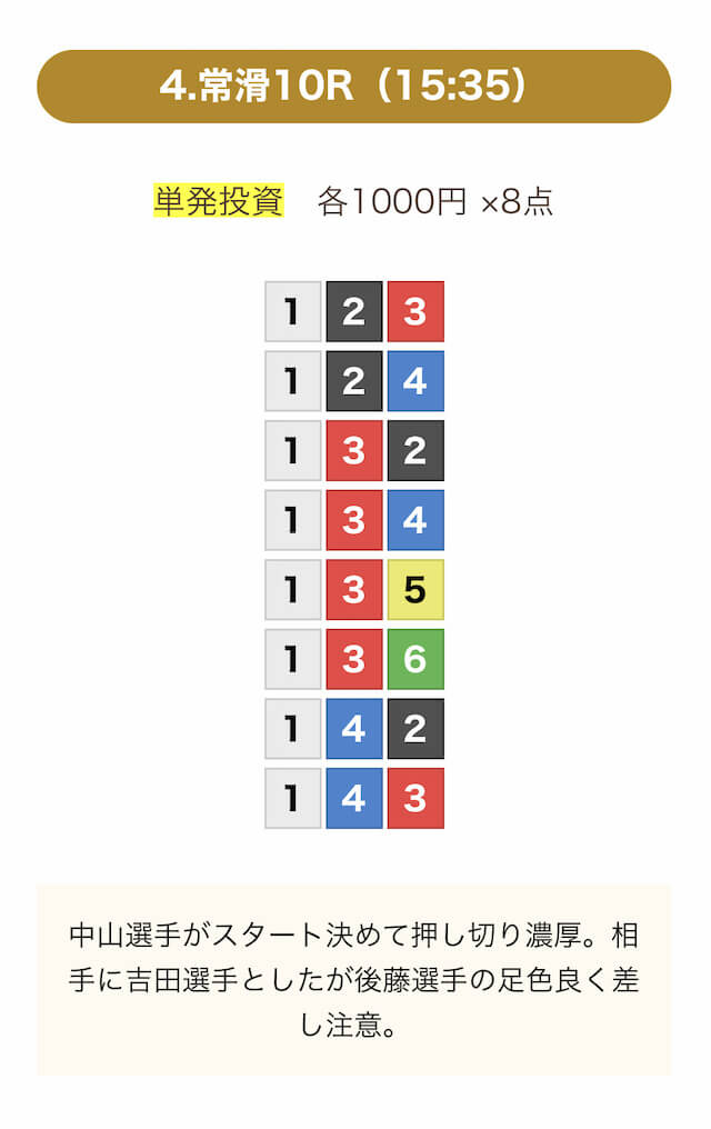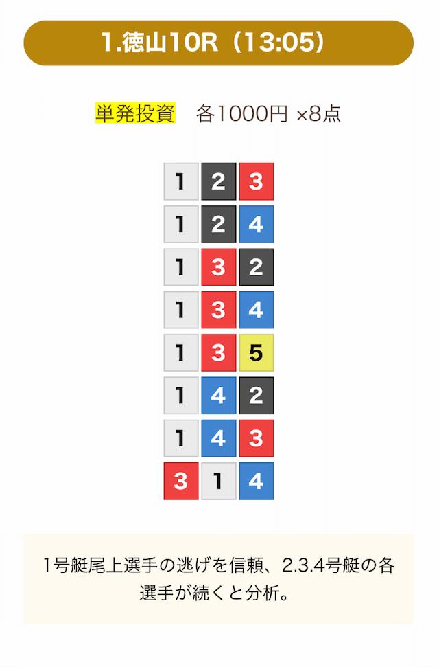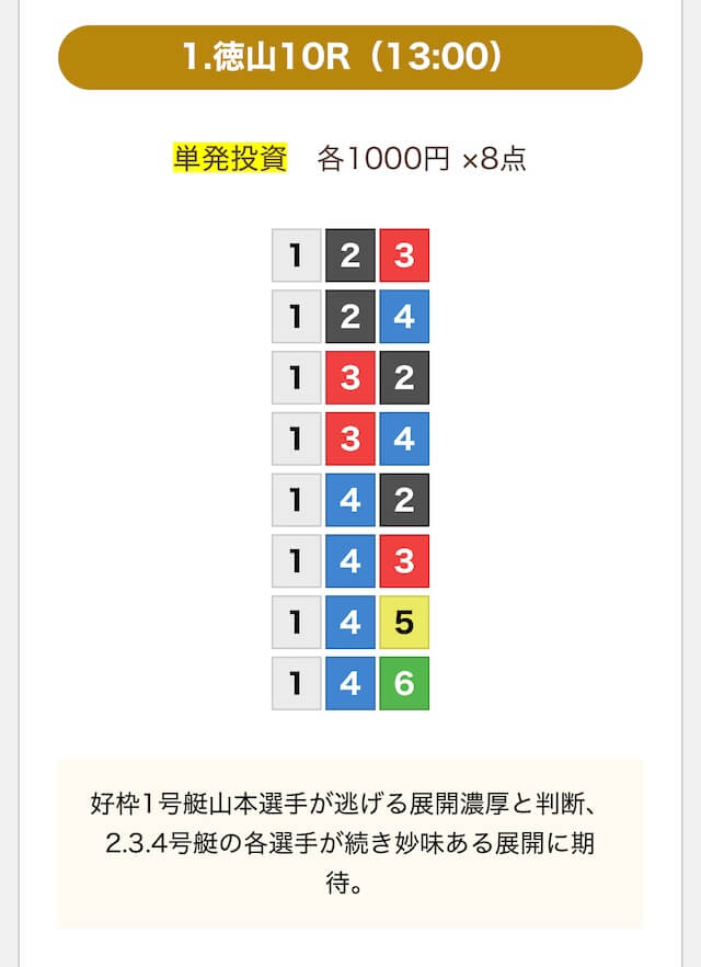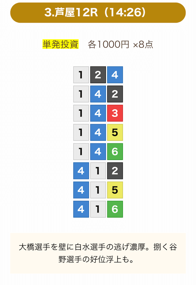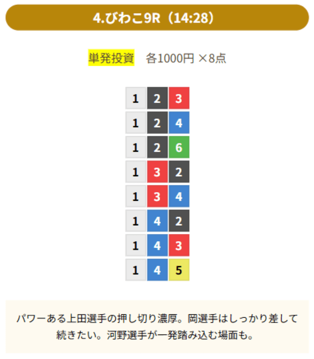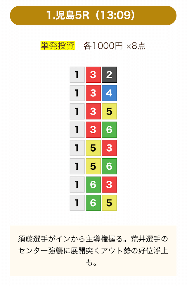 8点の買い目で結果を残し続けるってやばない?3連単って120通りだぜ!?8点の買い目だったら確率としては6%ぐらい?おれだったら絶対に無理w15点でやっと当てれるかなってぐらいww