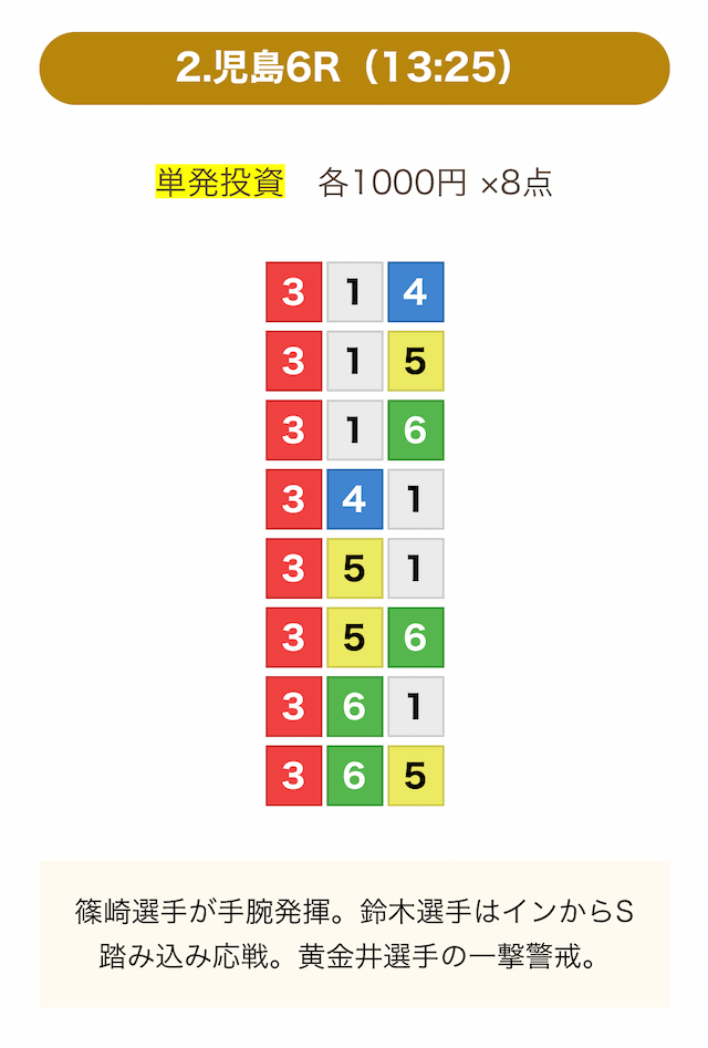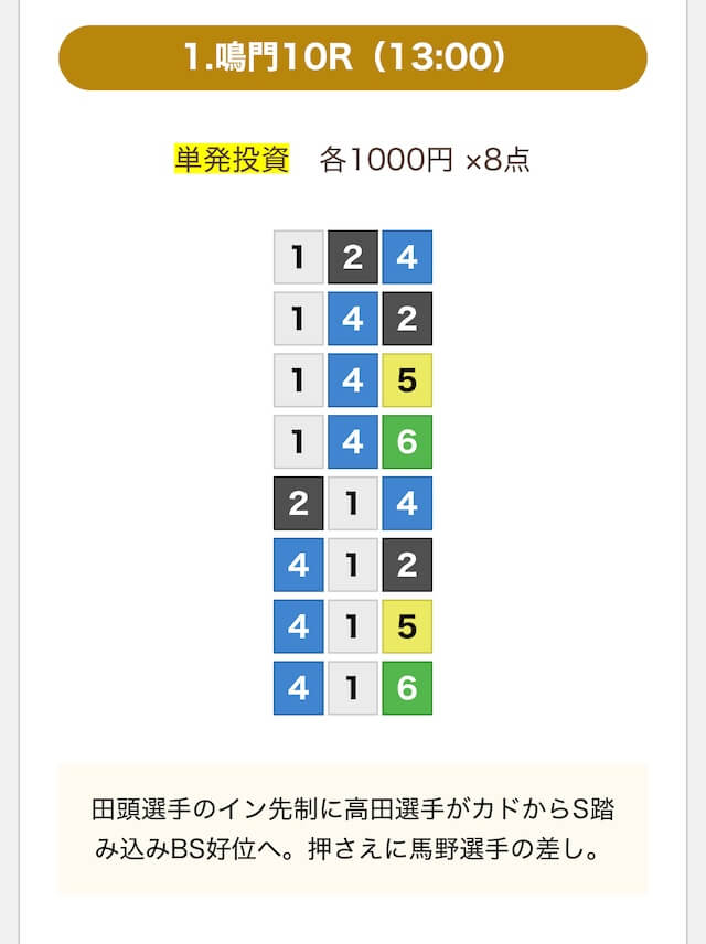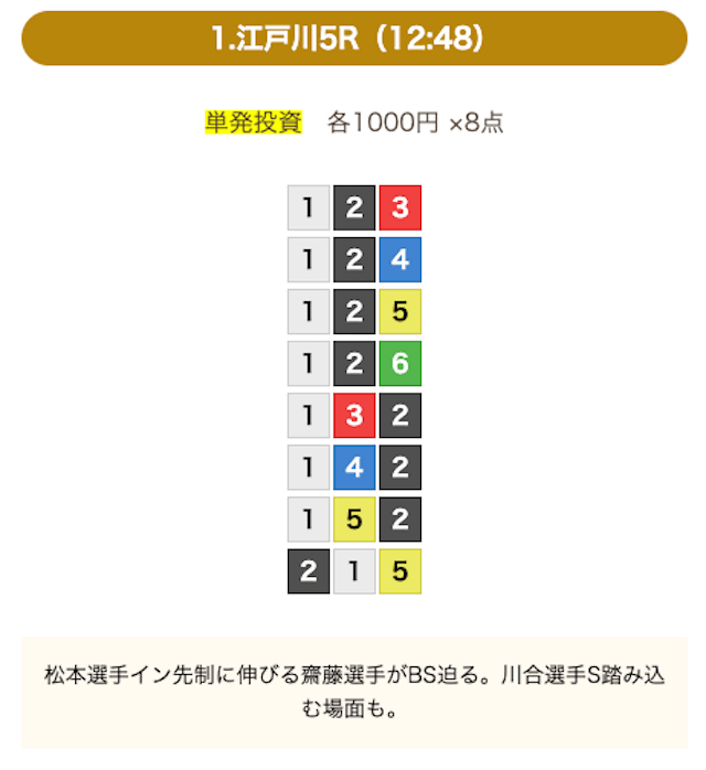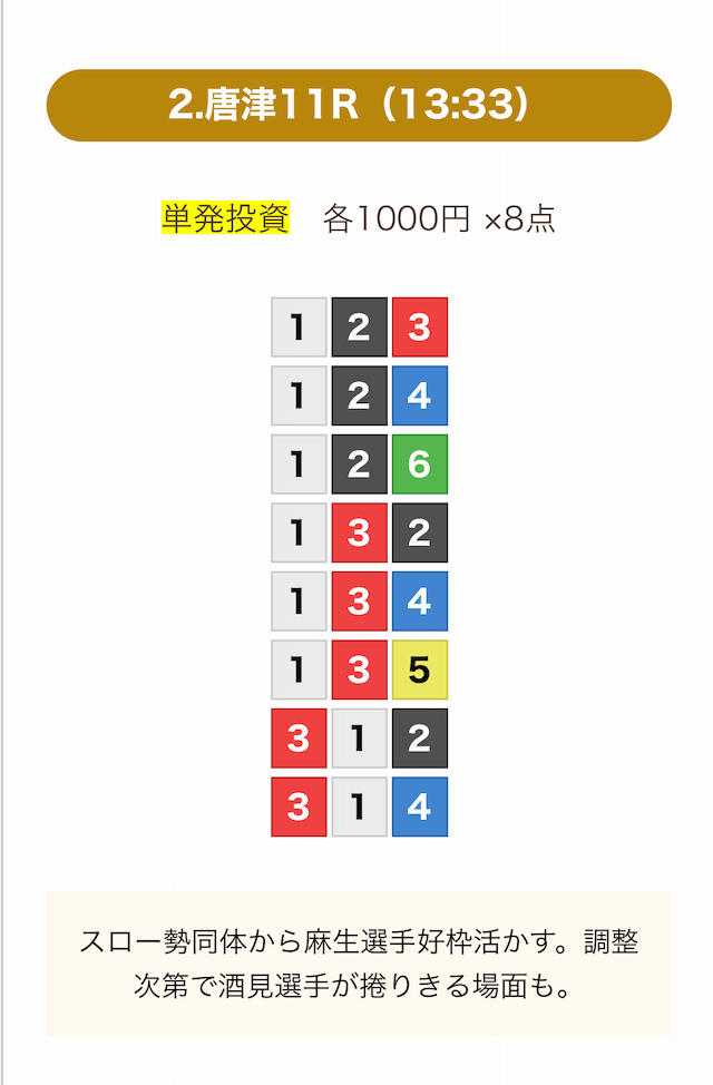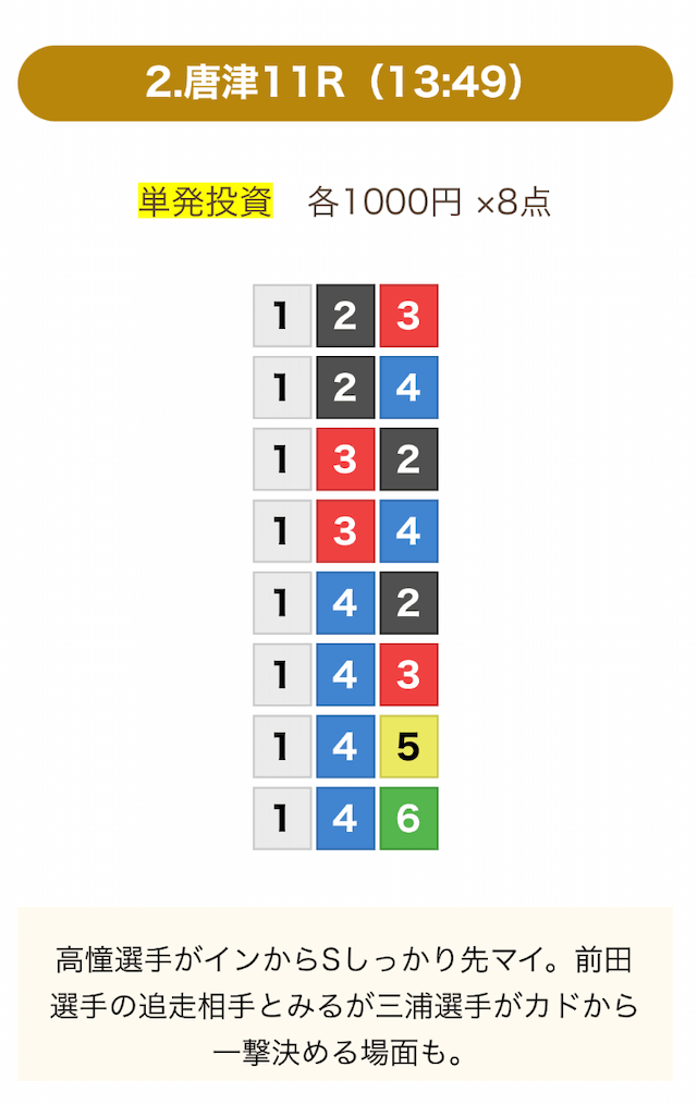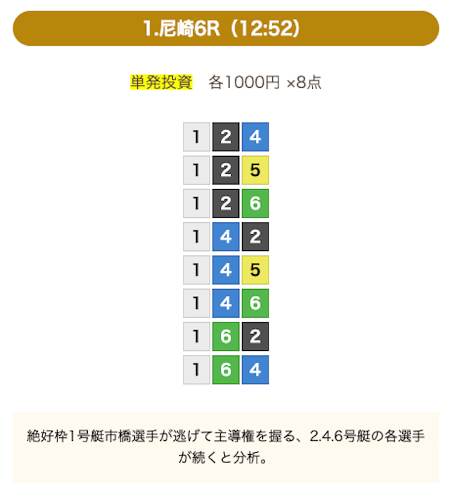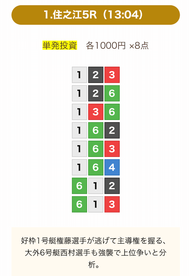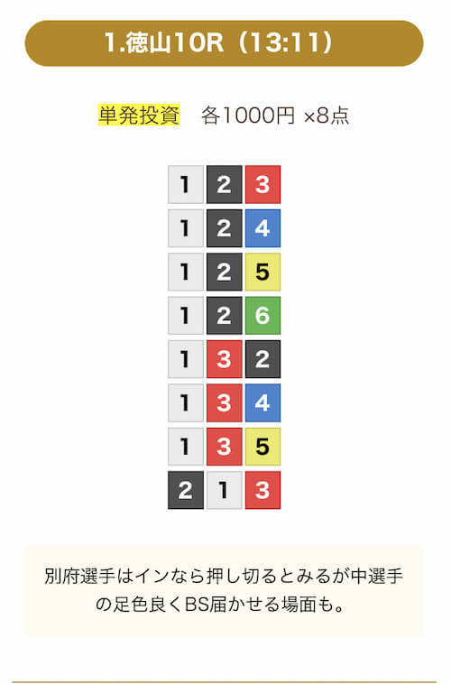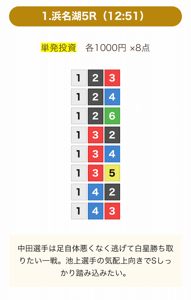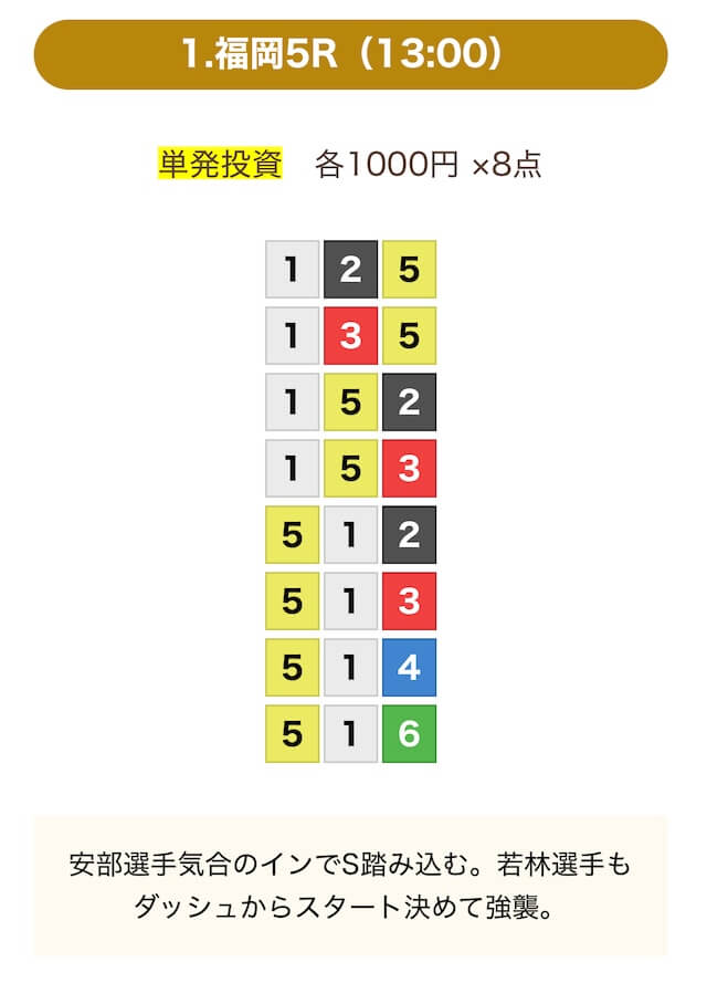 8点の買い目で結果を残し続けるってやばない?3連単って120通りだぜ!?8点の買い目だったら確率としては6%ぐらい?おれだったら絶対に無理w15点でやっと当てれるかなってぐらいww