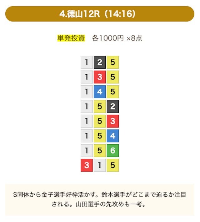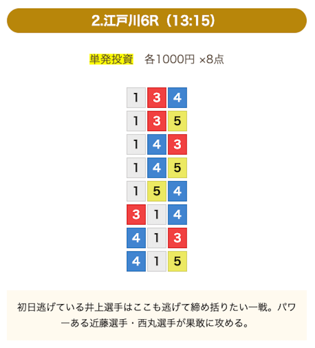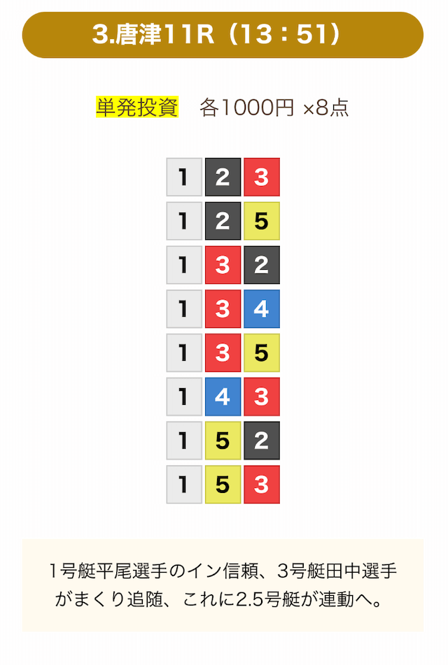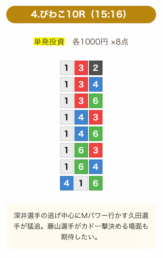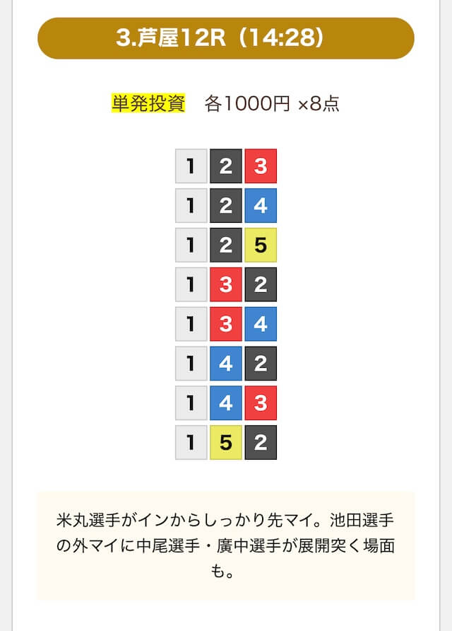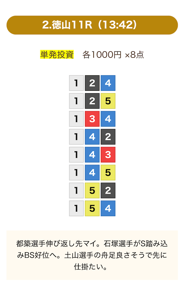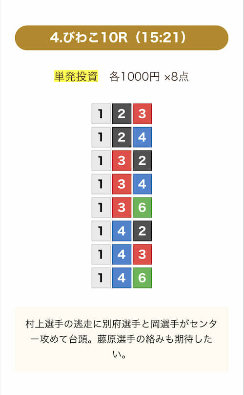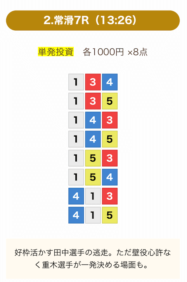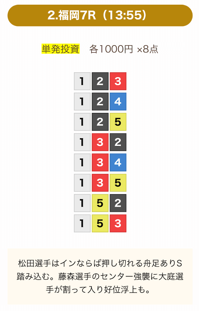8点の買い目で結果を残し続けるってやばない?3連単って120通りだぜ!?8点の買い目だったら確率としては6%ぐらい?おれだったら絶対に無理w15点でやっと当てれるかなってぐらいww