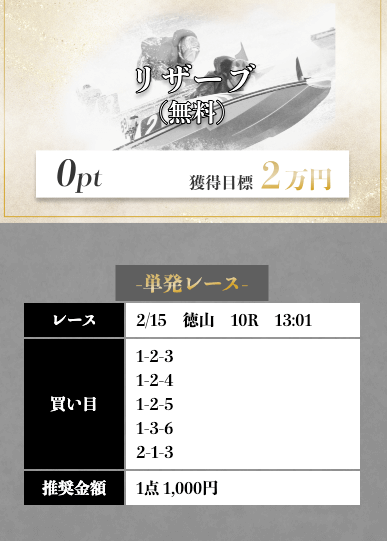 ’25/02/19 的中無料予想で15,600円獲得