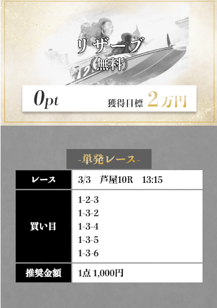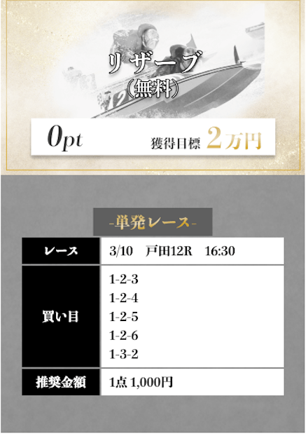 ’25/03/15 的中無料予想で14,600円獲得