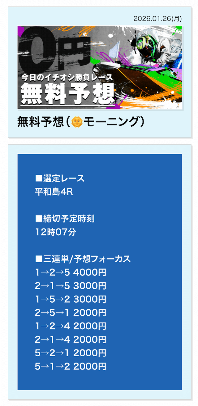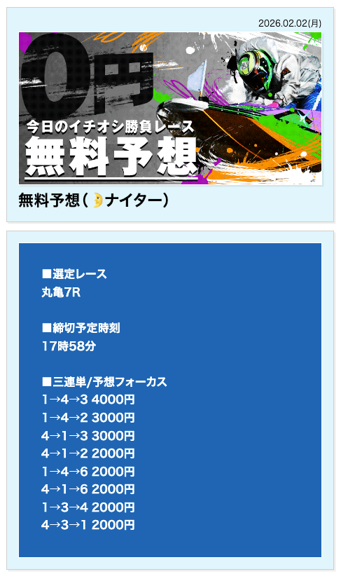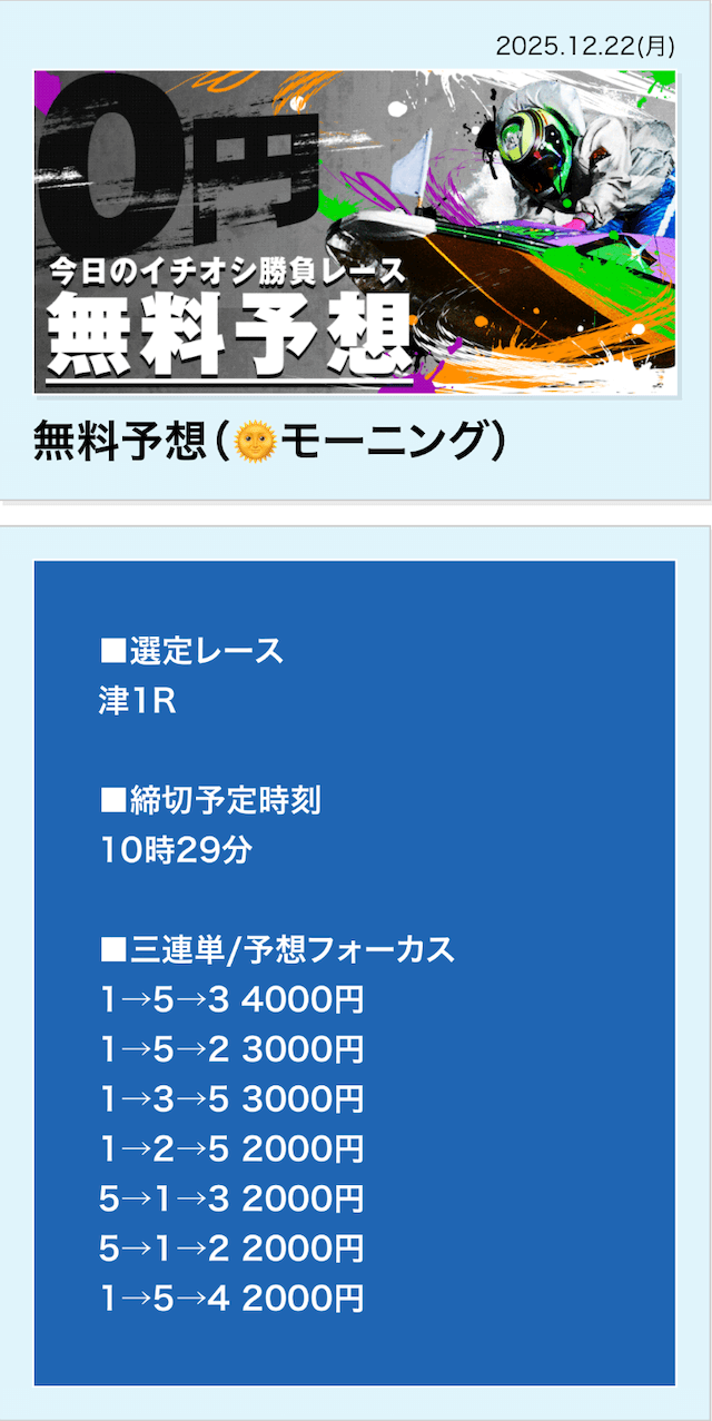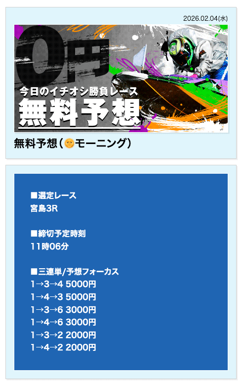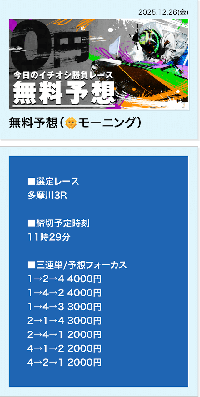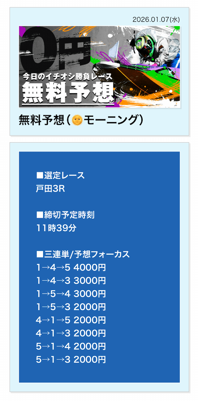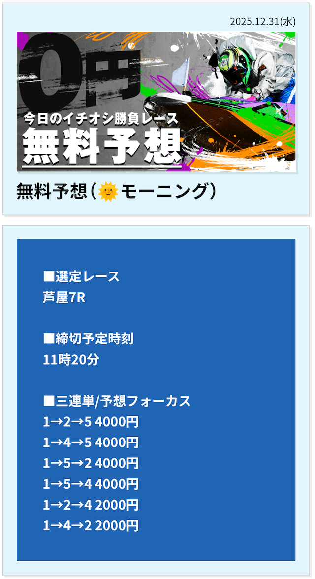 無料予想ではバランスの取れた買い目と舟券代の調整で、凄まじい結果を残しました。
