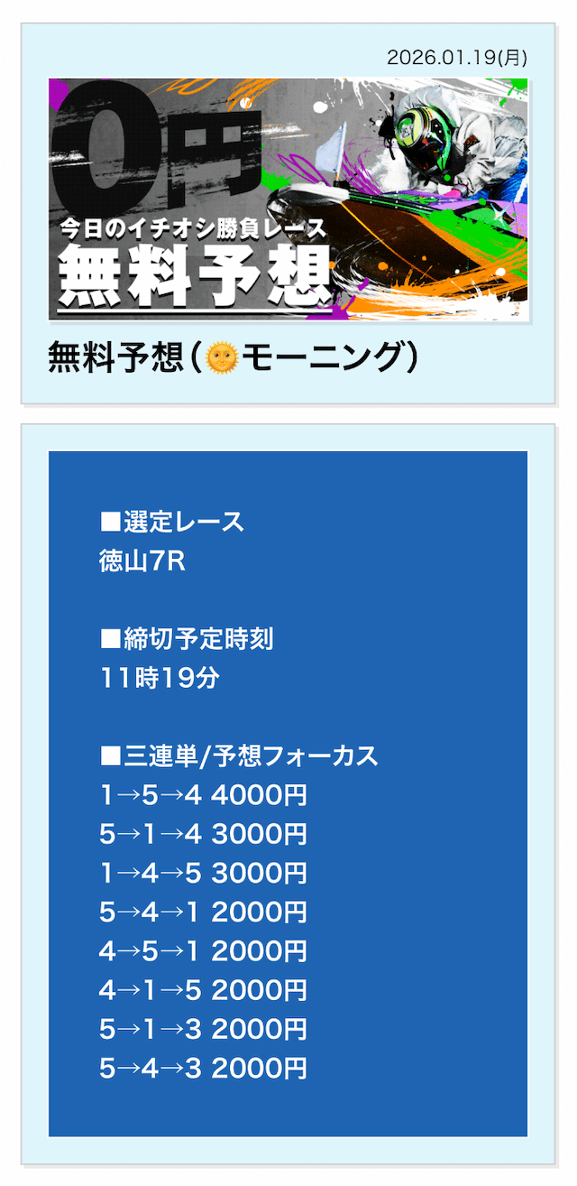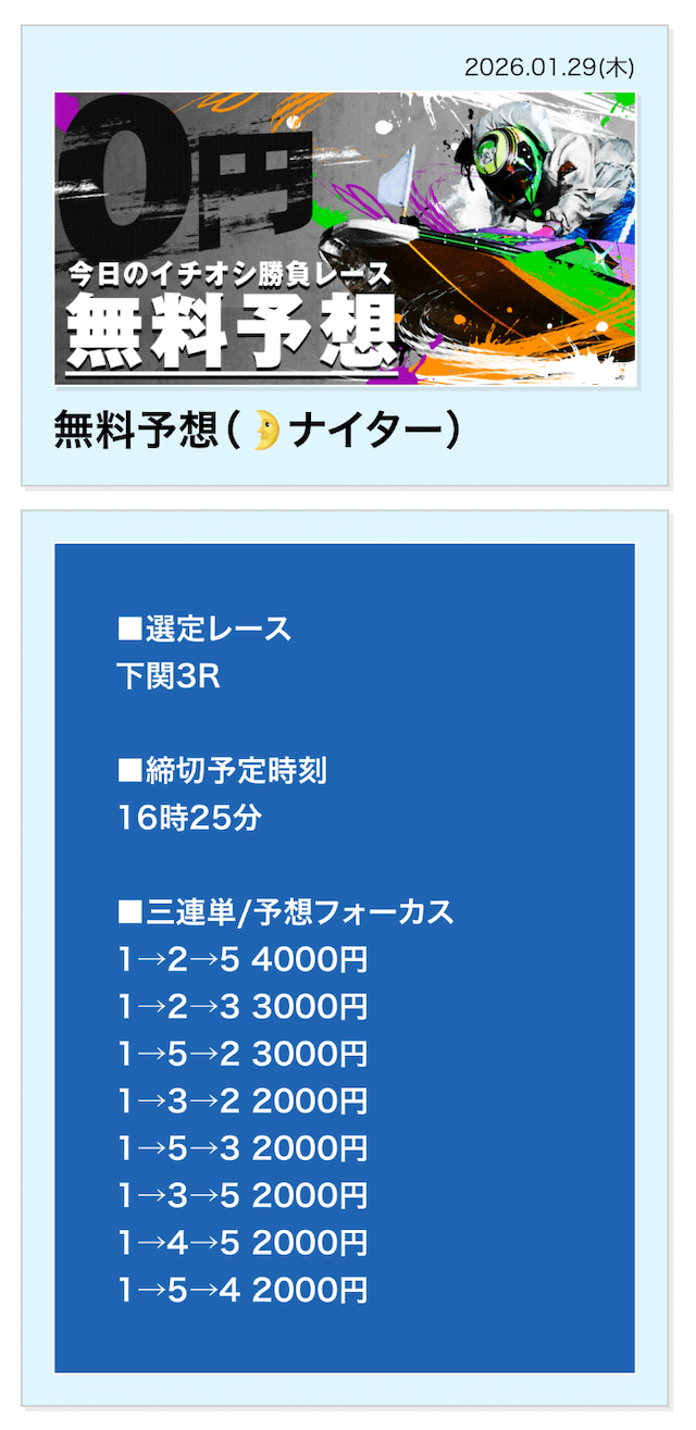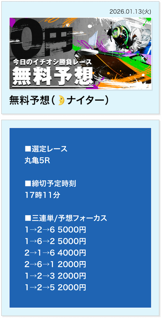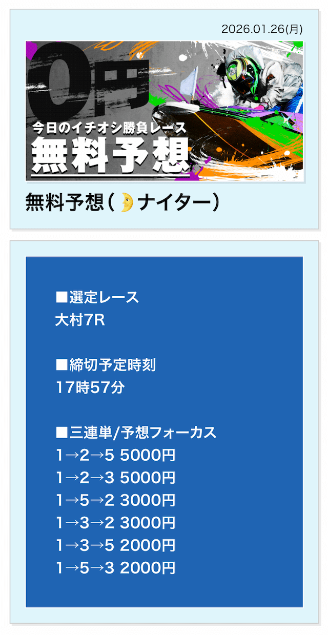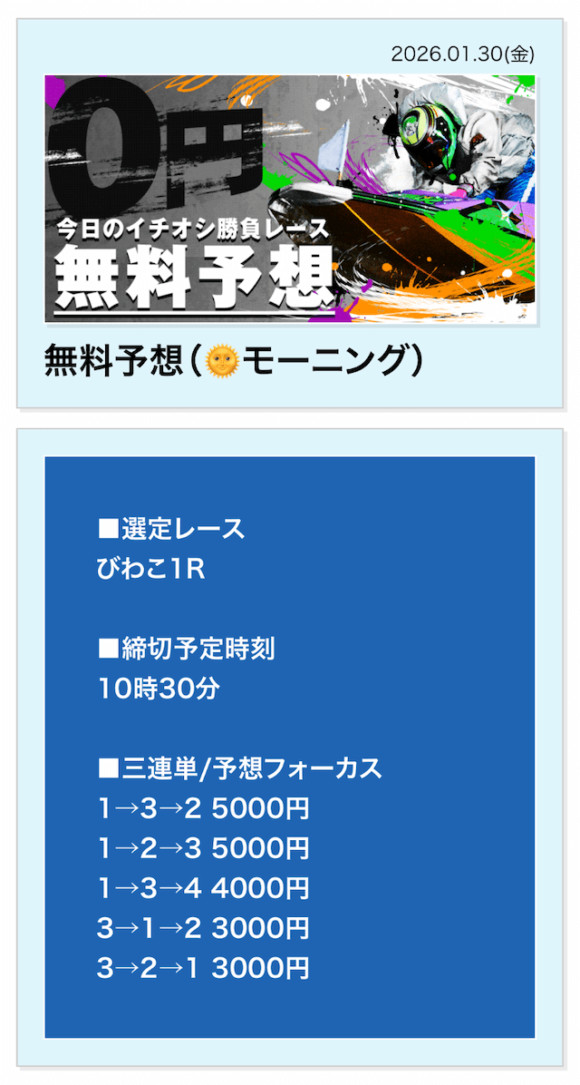 無料予想ではバランスの取れた買い目と舟券代の調整で、凄まじい結果を残しました。