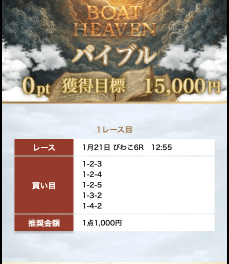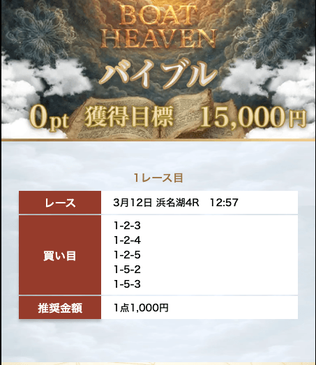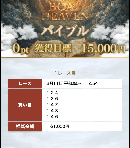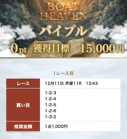 - Q3推奨投資金じゃなくても稼げますか?Aボートヘブンの予想は5点に絞った買い目なので、軍資金が少ない方でも稼ぎやすいでしょう。