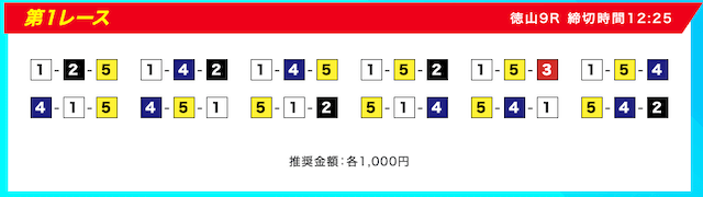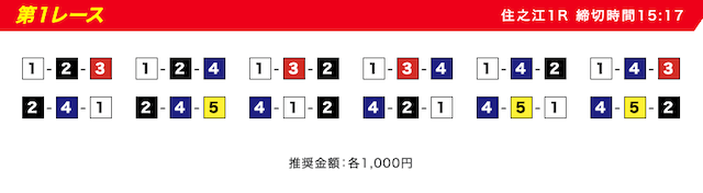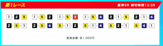 | ①-②-⑤ | 21.5倍 | 1,000円 | 21,500円 |