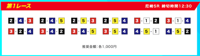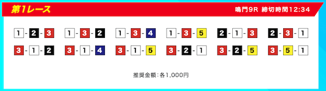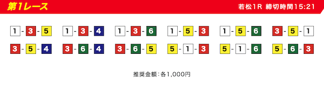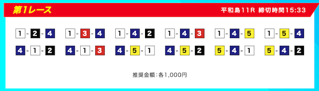 | ①-⑤-③ | 19.2倍 | 1,000円 | 19,200円 |