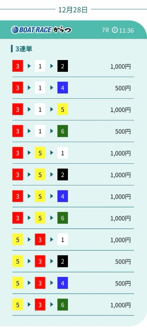 | 券種 | 3連単 |