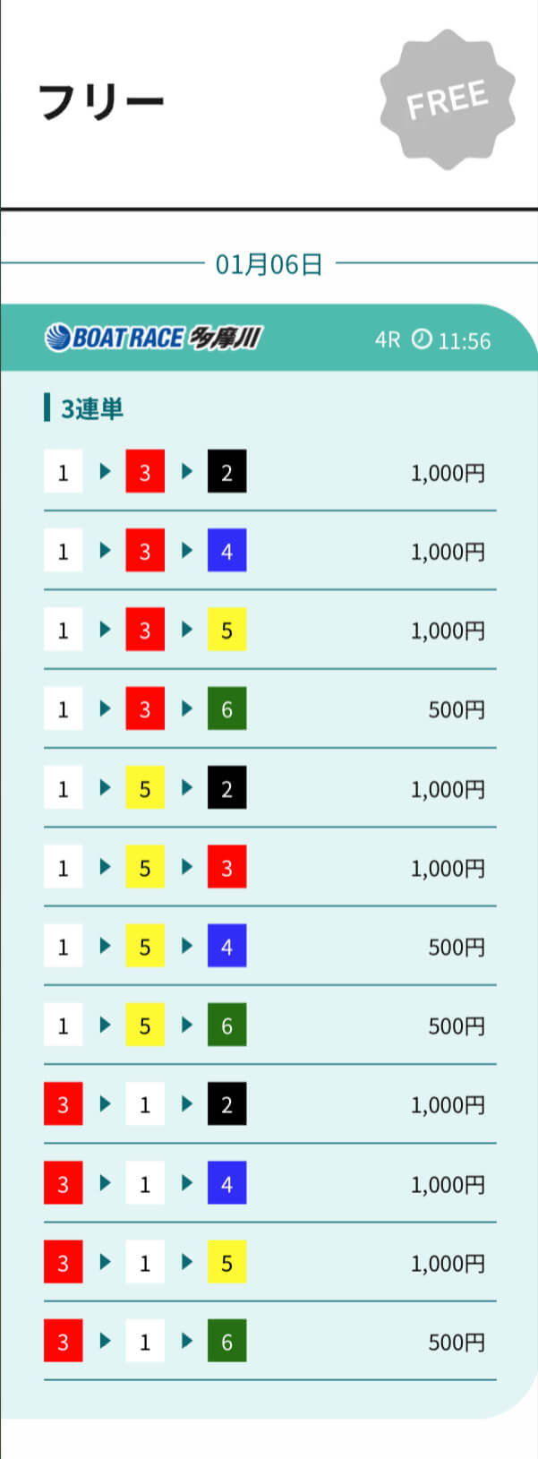 ’26/01/06 的中無料予想で30,700円獲得
