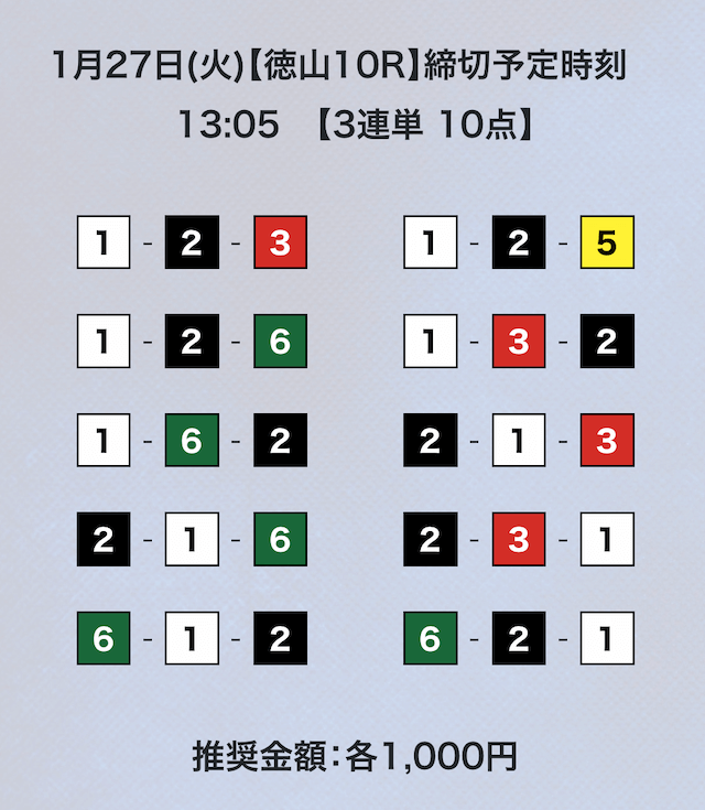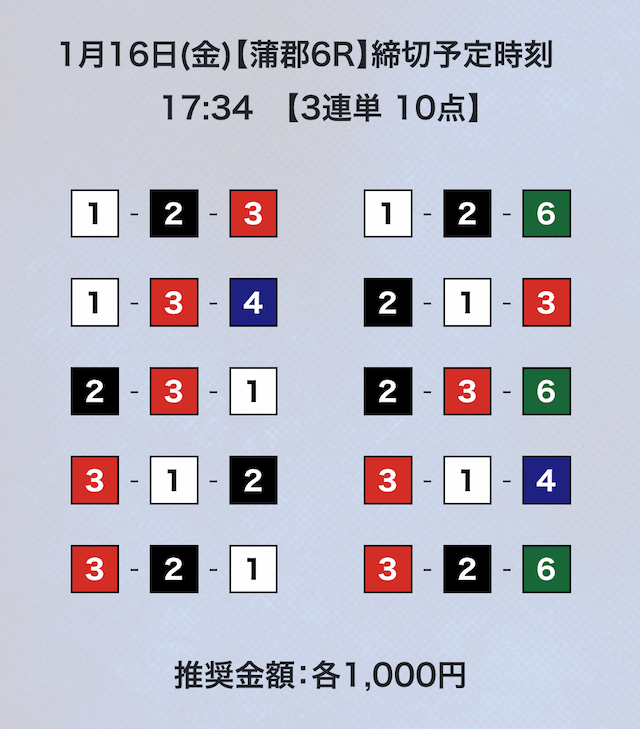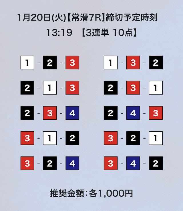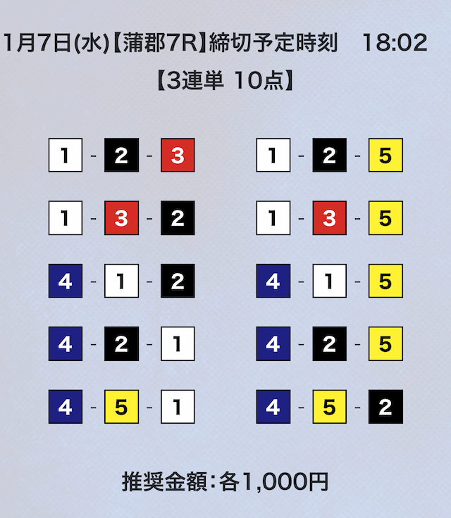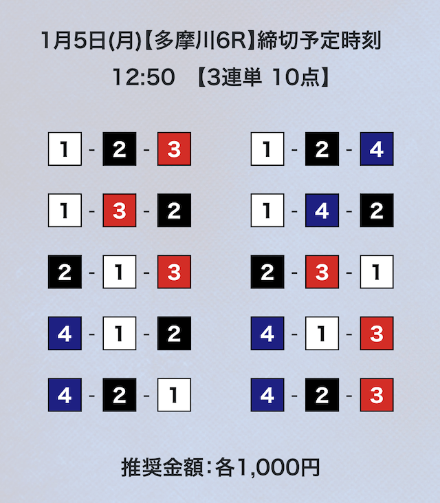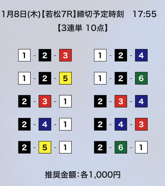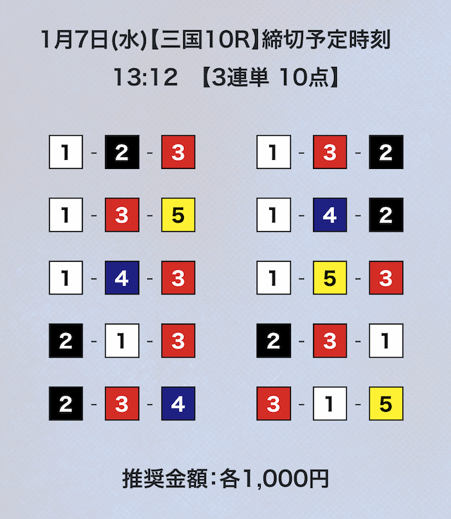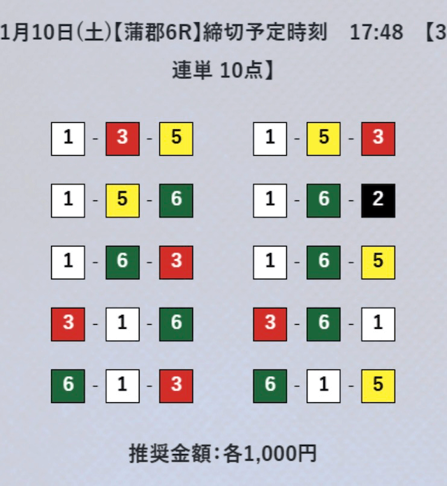 3連単フォーメーションの10点予想。