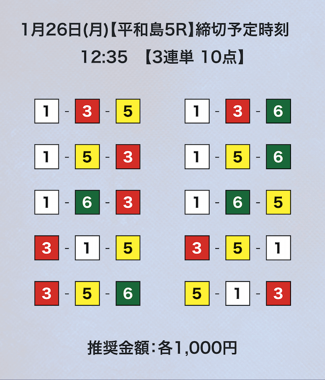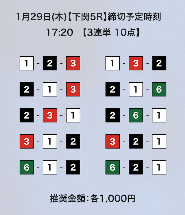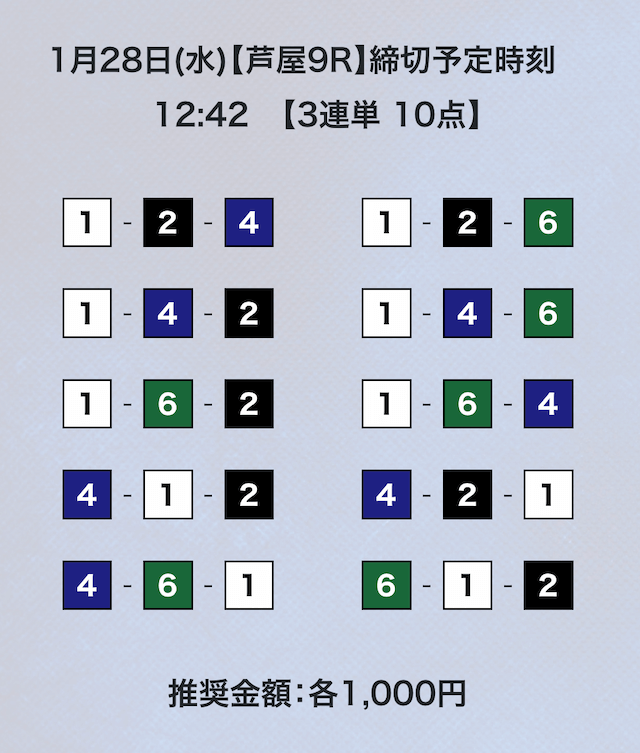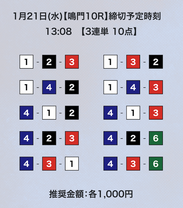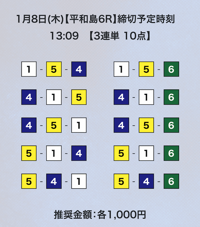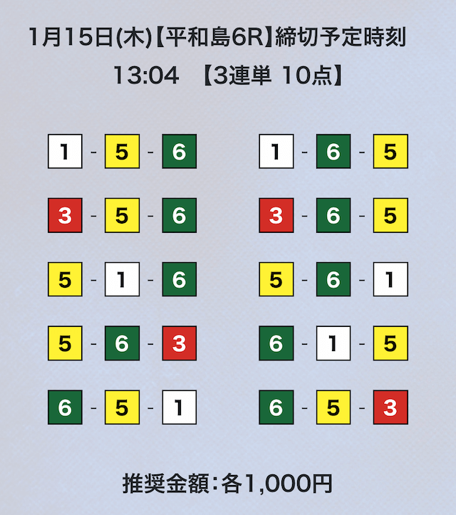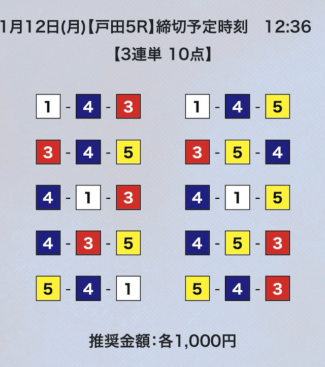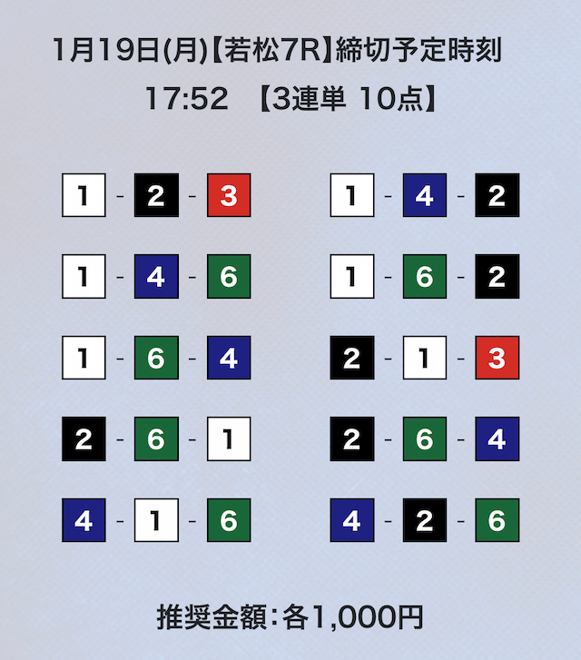 3連単フォーメーションの10点予想。
