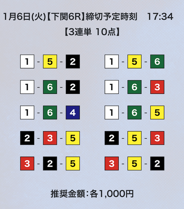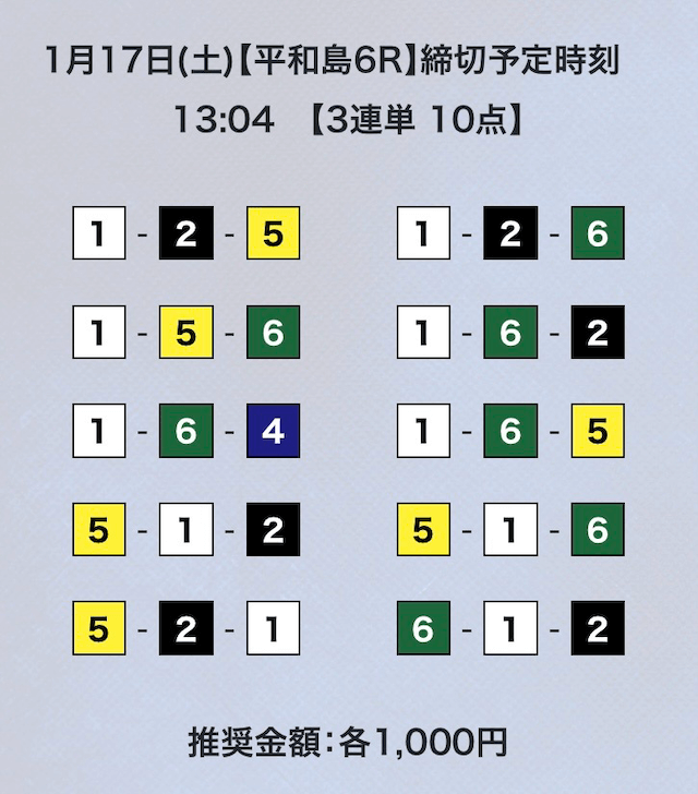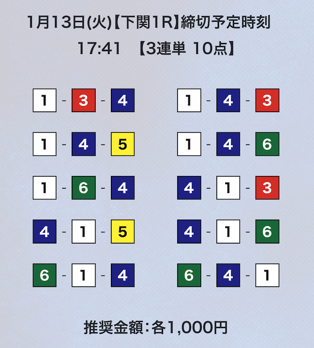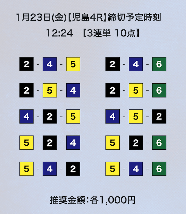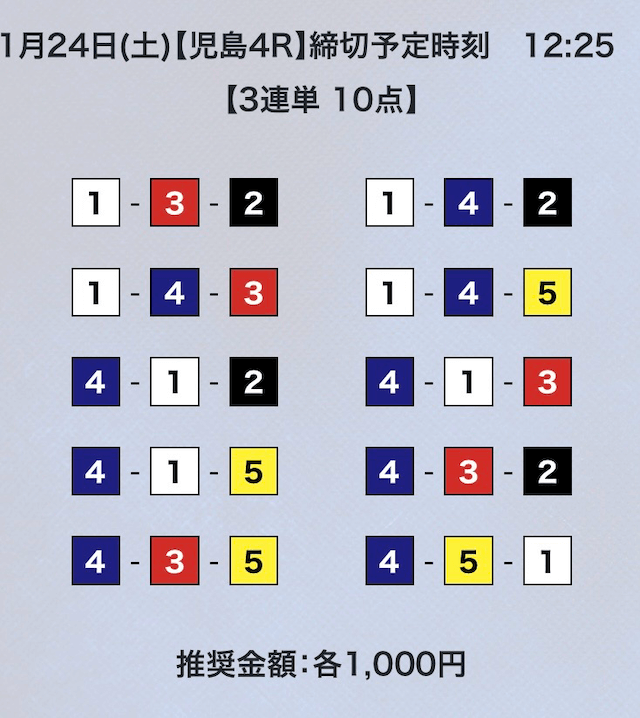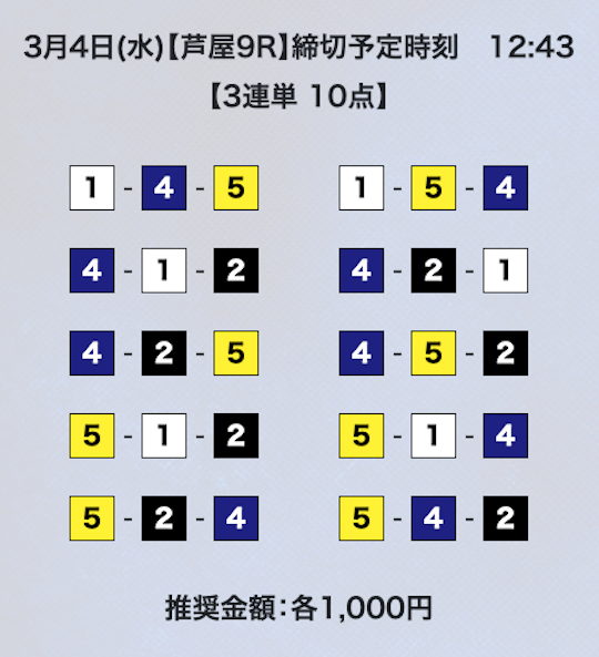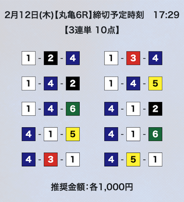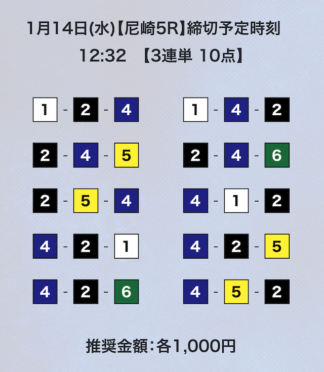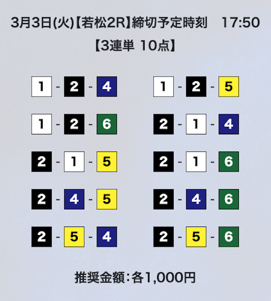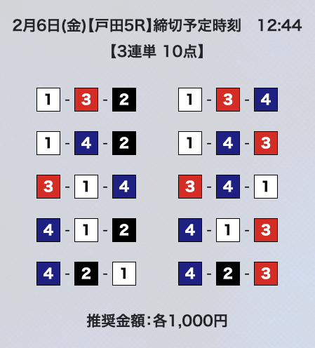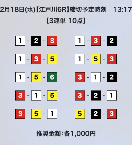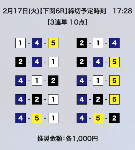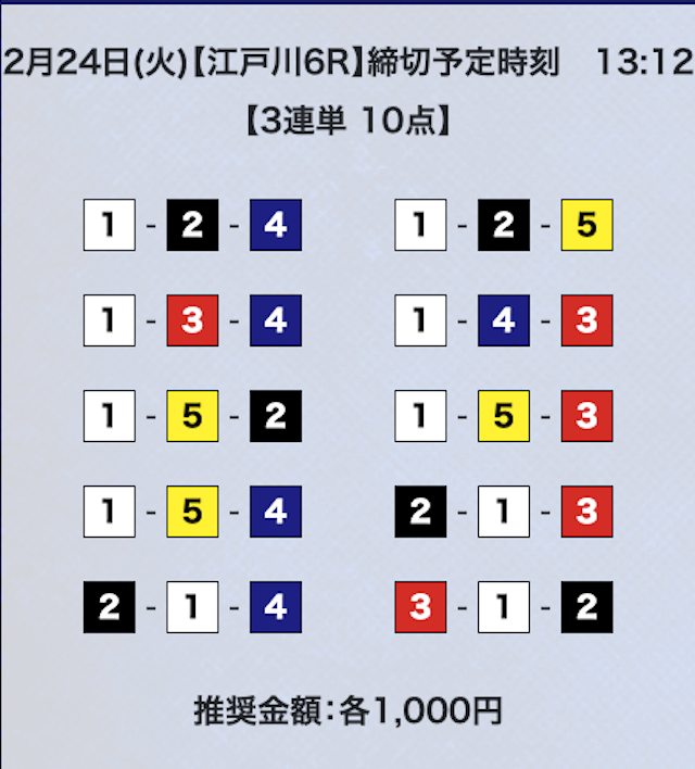競艇は平均配当低いから点数絞ってくれないと、トリガミのリスク高くて使えないよ。