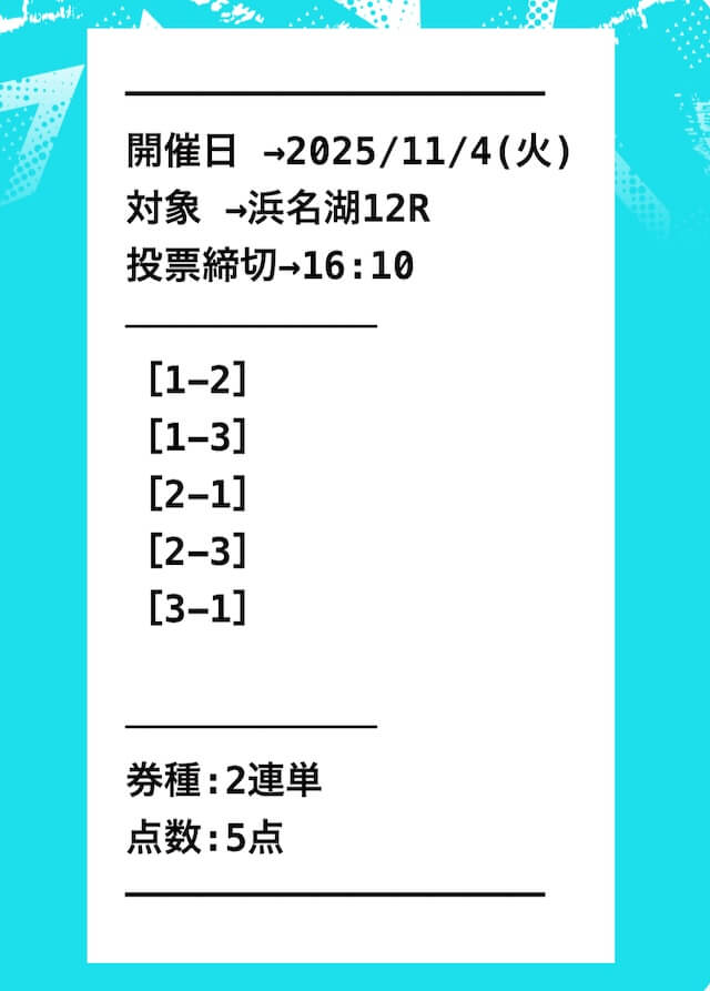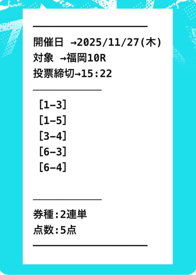 ’25/11/05 的中無料予想で3,350円獲得