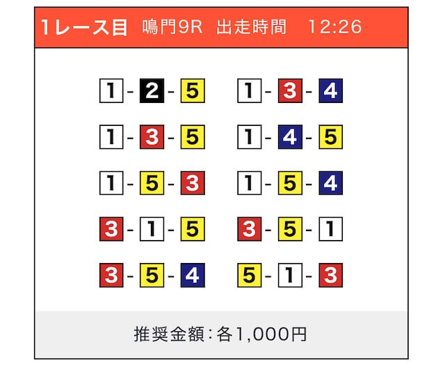 公開された買い目は9点あるので、推奨金額にあわせて購入すると、舟券代は9,000円。