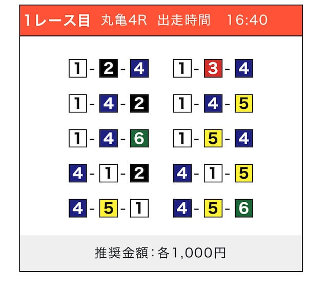 ただ、仮に1-2-全の4点に絞った買い目だった場合、万が一紐荒れしたときのリスクが高いです。