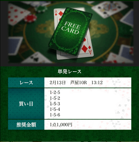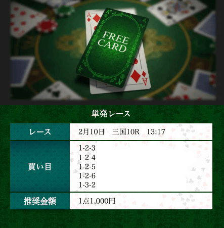 堅実な狙い方の無料予想では、5点に厳選した買い目でしっかりと的中と利益を実現。