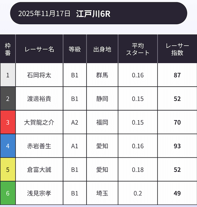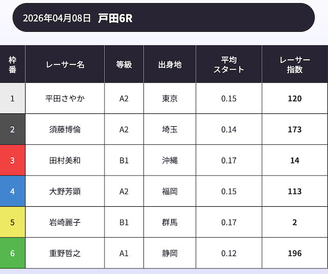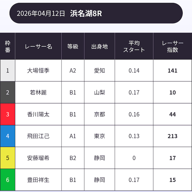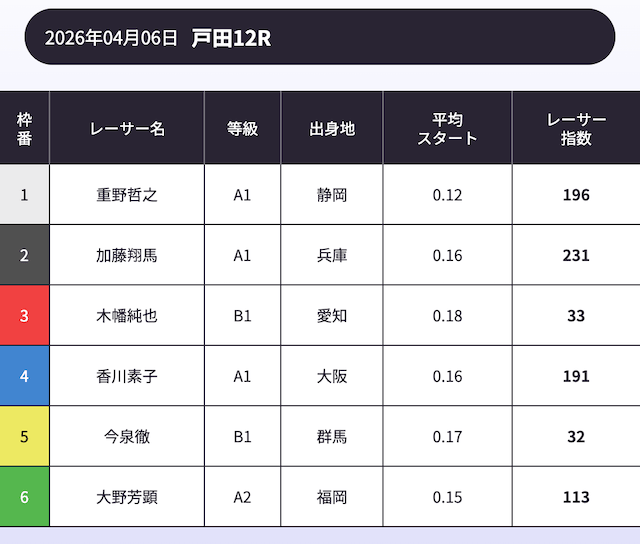 ぶっちゃけ競艇って選手がどれだけ活躍するかだから、ボートラボのレーサー指数は最高だね!