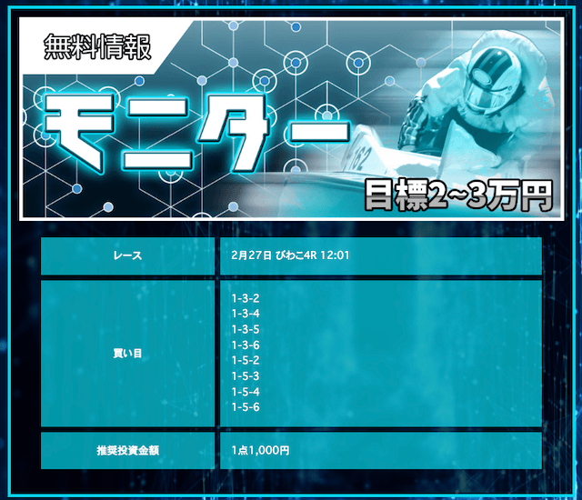 ’25/02/17 的中無料予想で13,300円の払い戻しを獲得