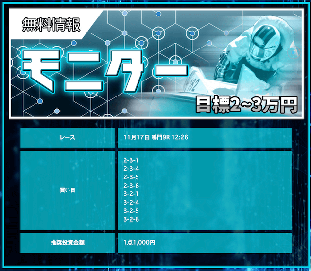 ’23/10/16 的中無料予想で311,300円の払い戻しを獲得