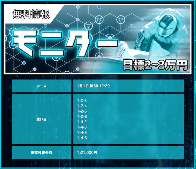’23/01/31 的中無料予想で15,700円の払い戻しを獲得