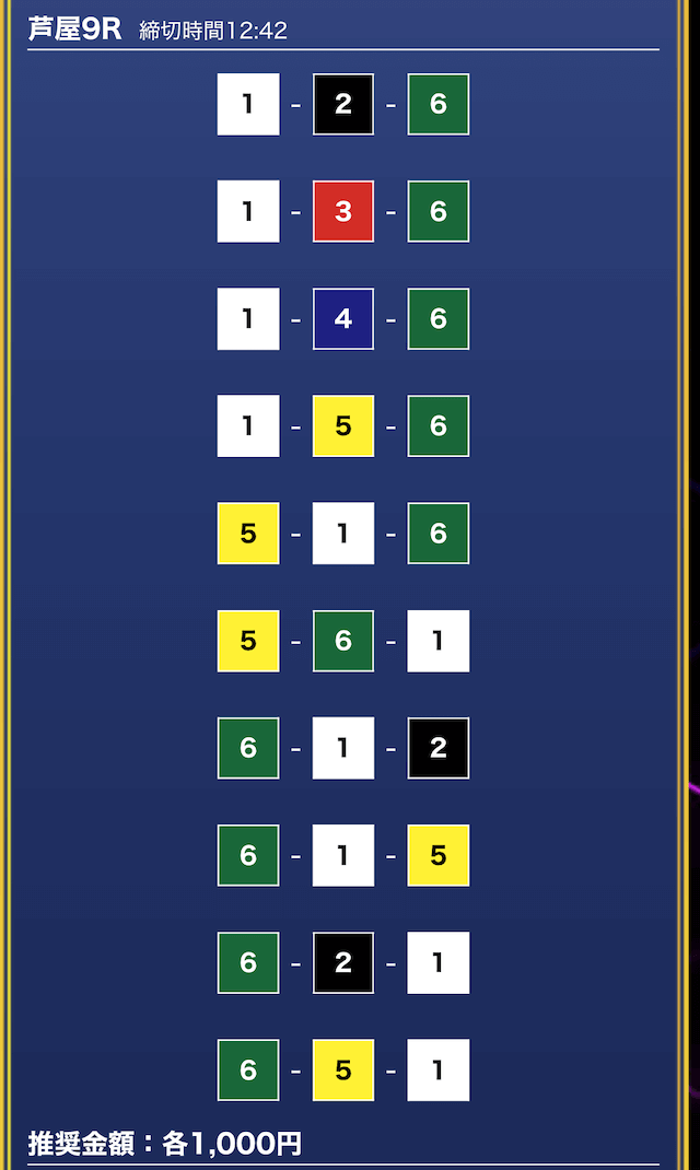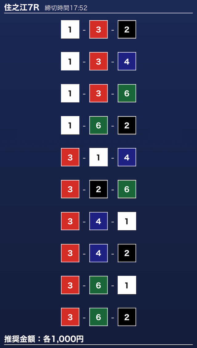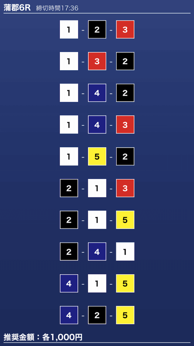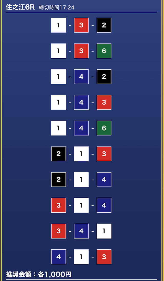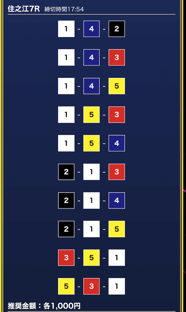 買い目点数が10点だから小点数ってわけじゃないんだけど、中穴ぐらいの決着が多いからしっかりプラス。おれは5回ぐらいの参加で7万ぐらいプラス出てるよ〜。