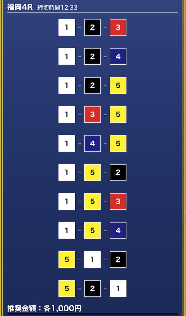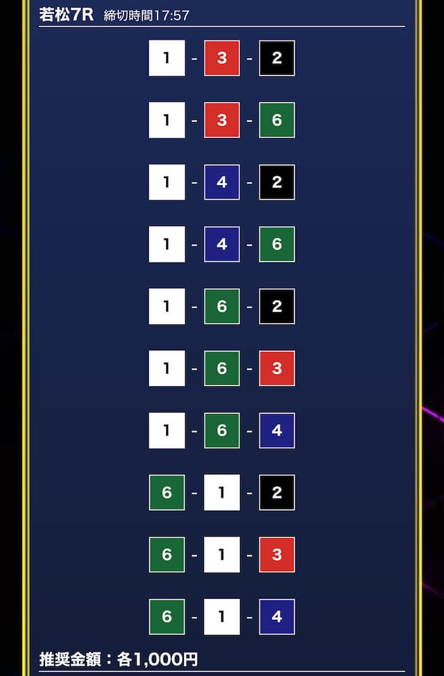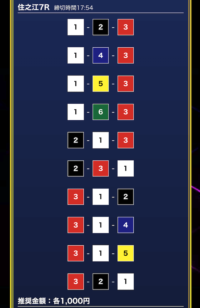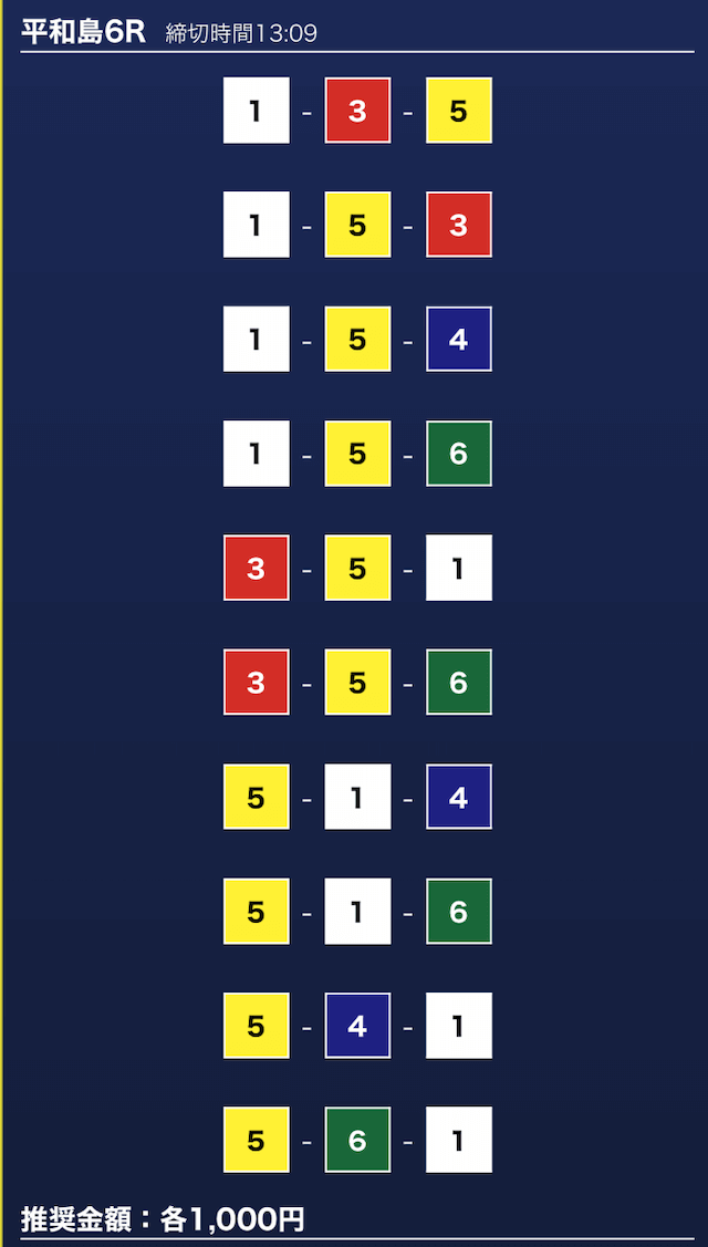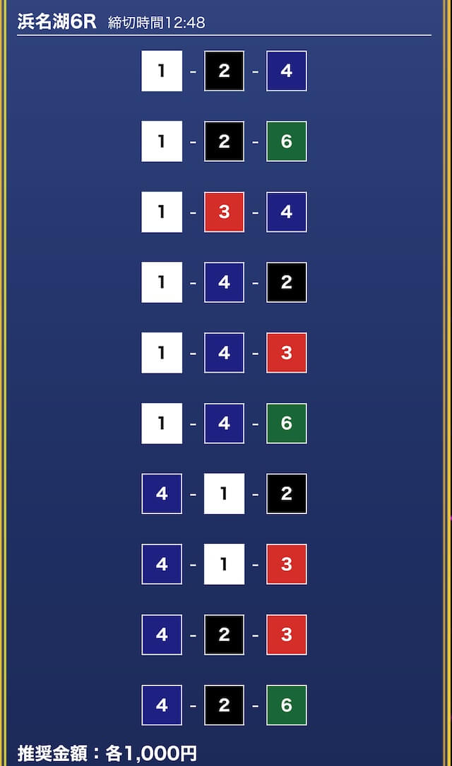 買い目点数が10点だから小点数ってわけじゃないんだけど、中穴ぐらいの決着が多いからしっかりプラス。おれは5回ぐらいの参加で7万ぐらいプラス出てるよ〜。