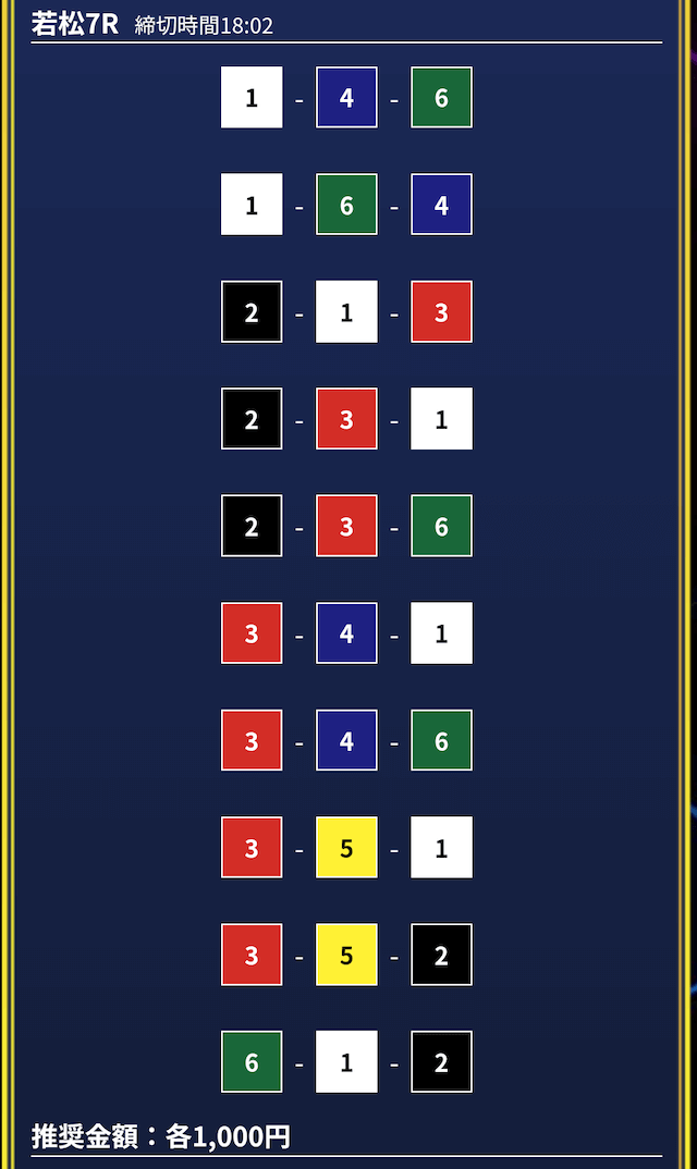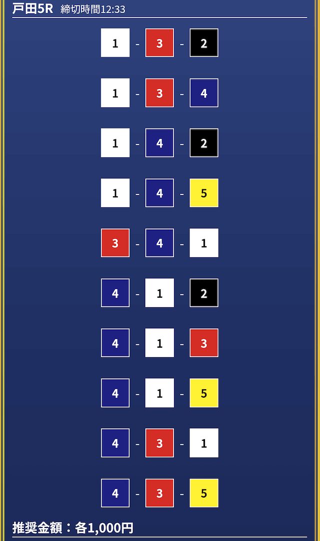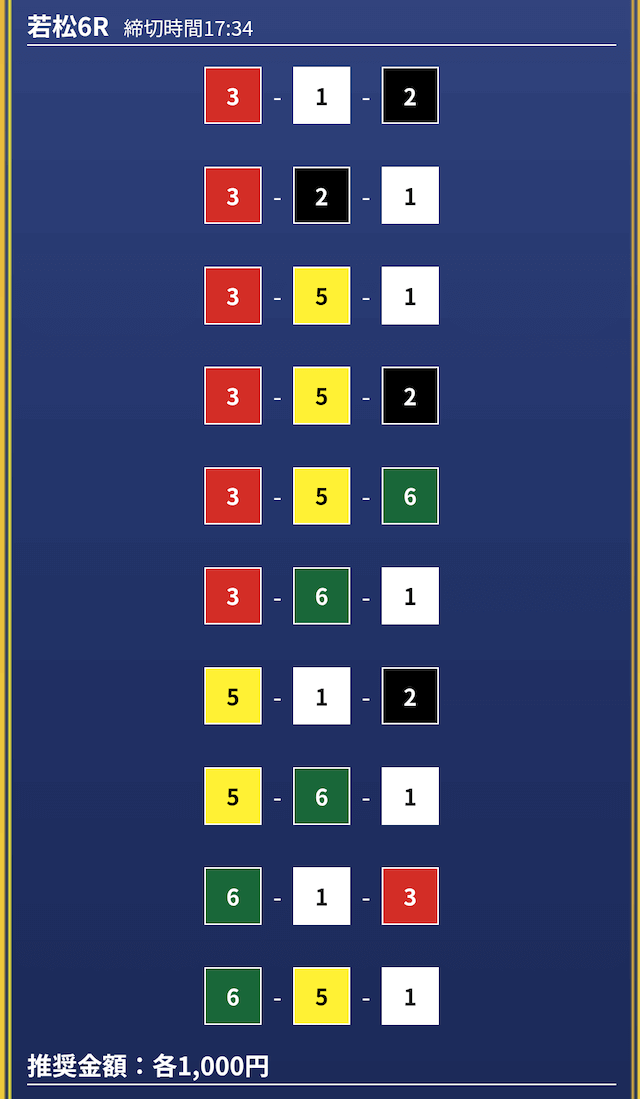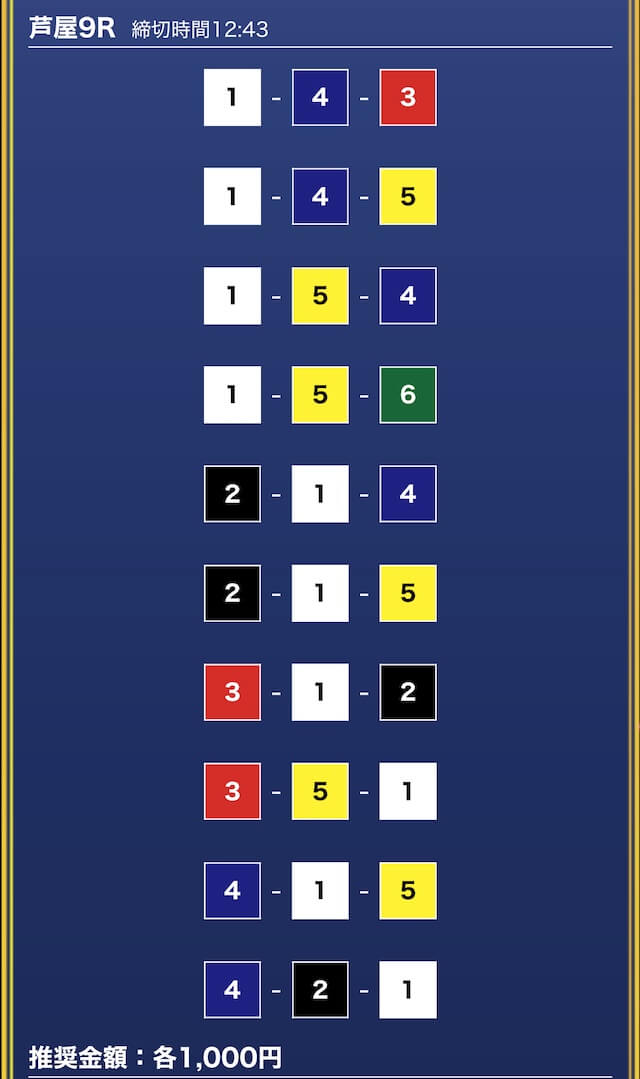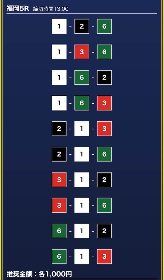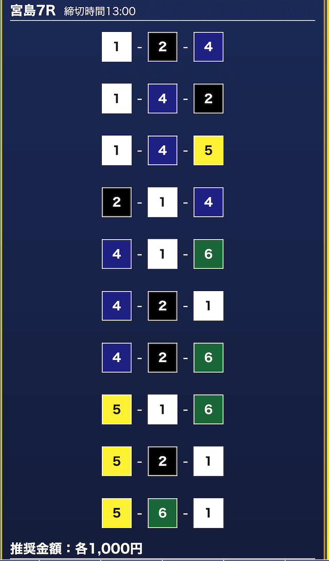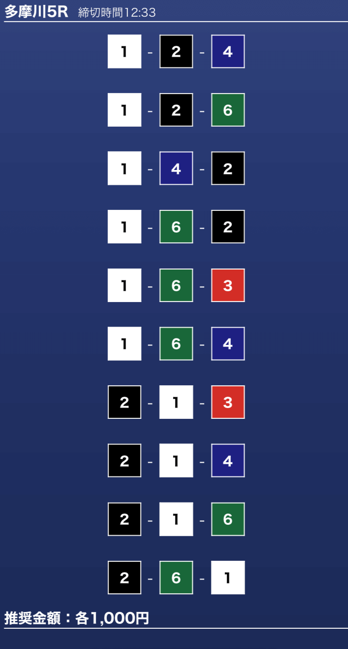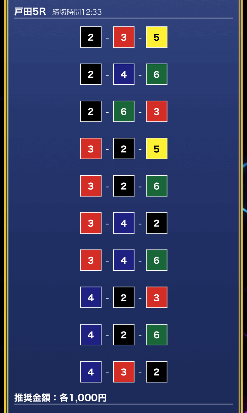 ★★★★★ 5.02023/01/12買い目点数が10点だから小点数ってわけじゃないんだけど、中穴ぐらいの決着が多いからしっかりプラス。おれは5回ぐらいの参加で7万ぐらいプラス出てるよ〜。