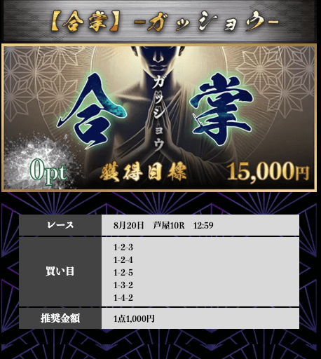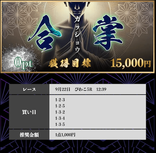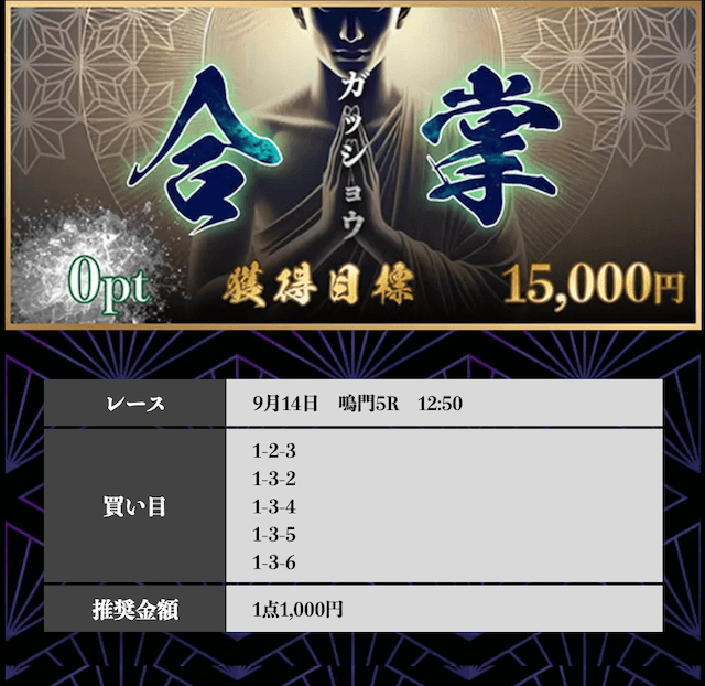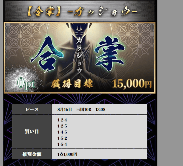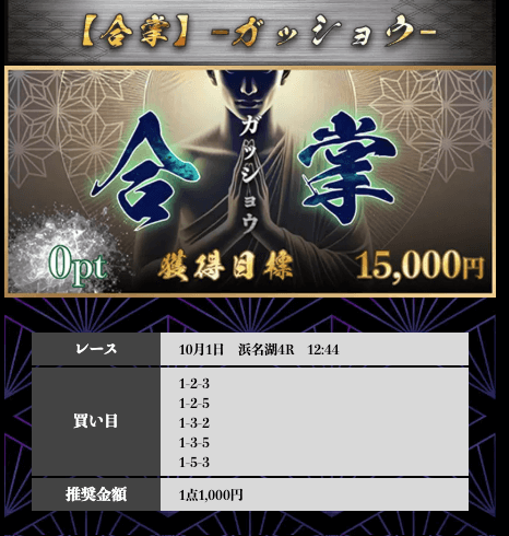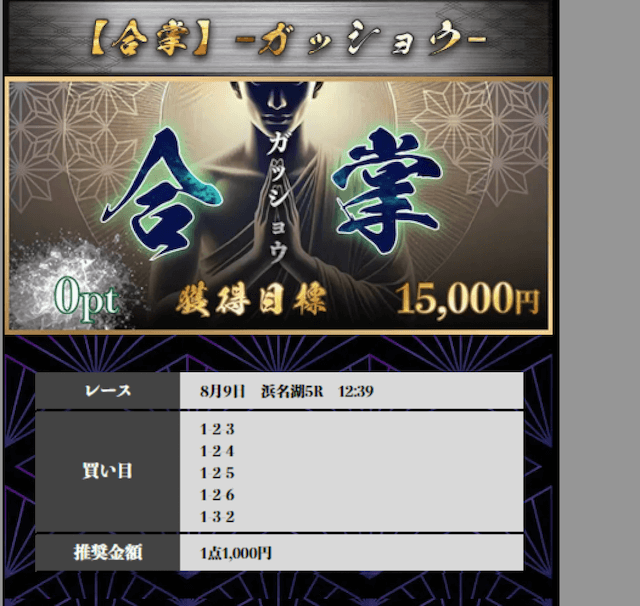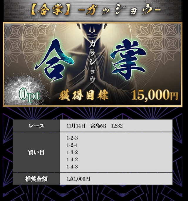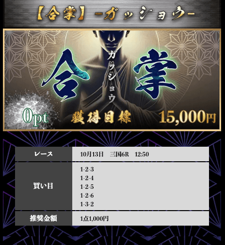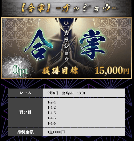 競艇修羅の無料予想って5点しかないのに、よく当たるもんだね! 点数絞って当てれるのは予想の質が高い証拠だと思う!