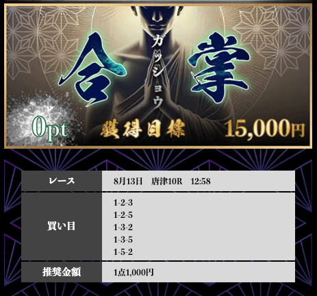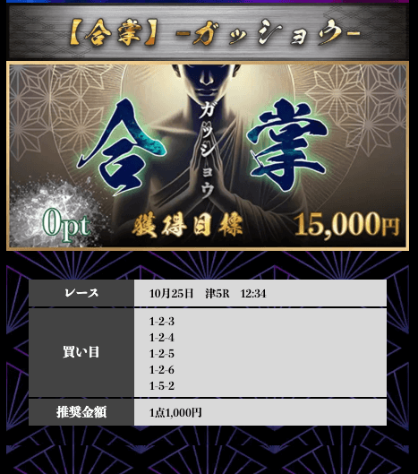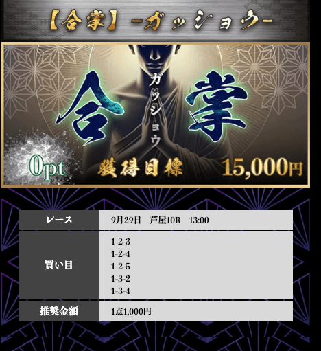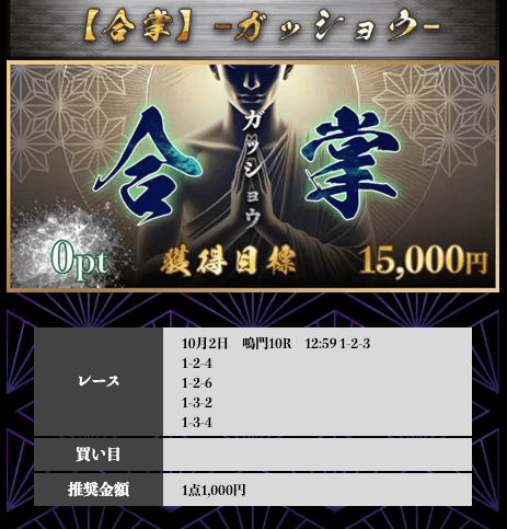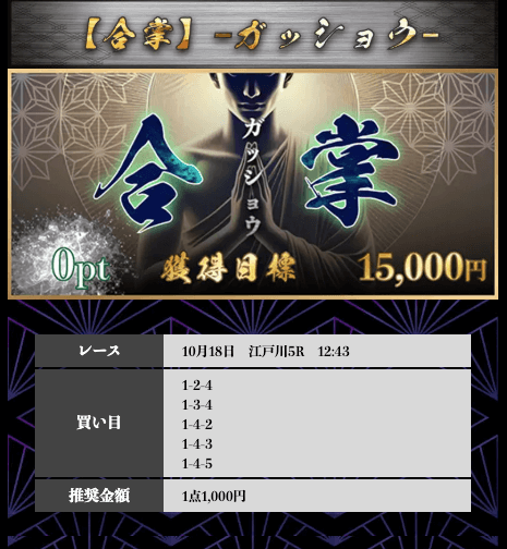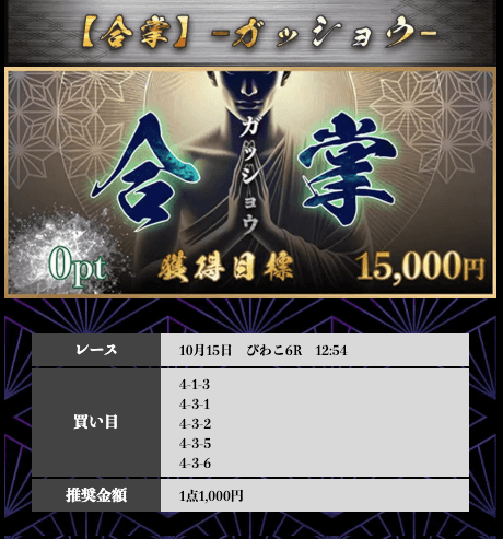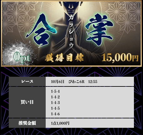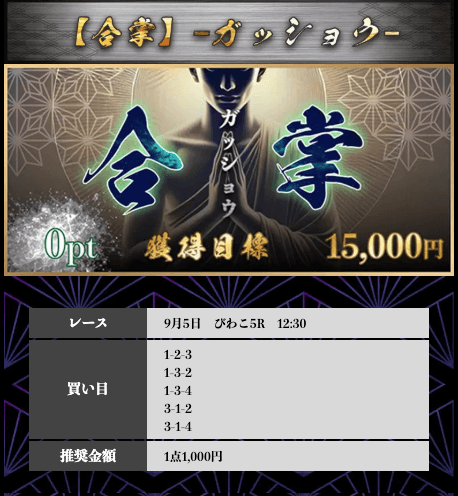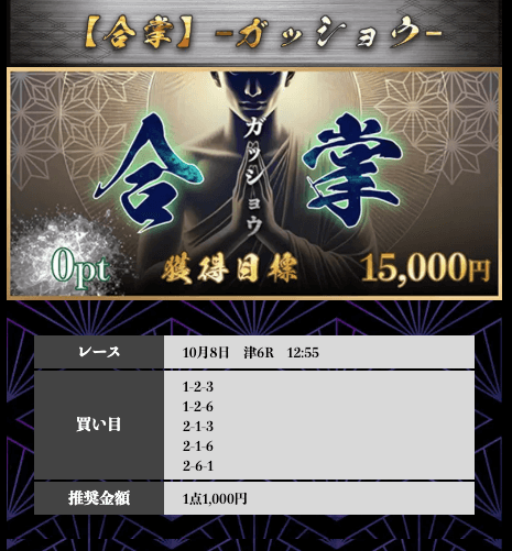 無料予想の推奨金額って結局いくらなん?プランの推奨投資金額は1点1,000円の計5,000円だけど、的中実績ページの注意書きには、サイト推奨金額1万円で購入した場合の金額って書いてある。。。無料予想の結果も載っているから、1点2,000円で5点買えってこと?わからん