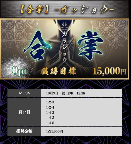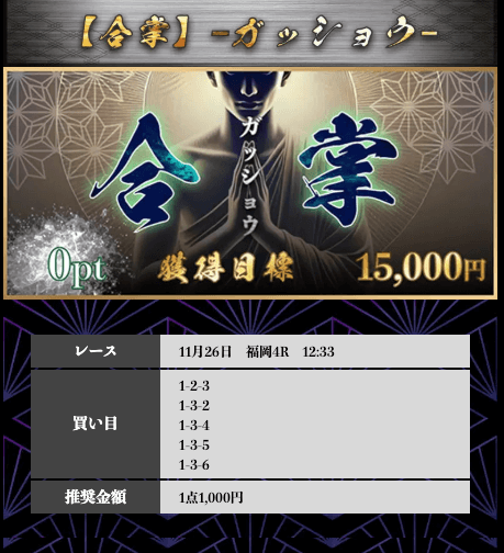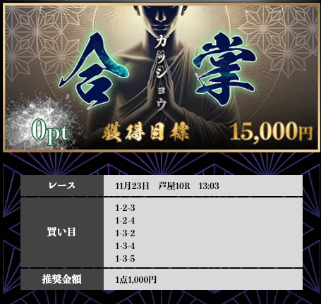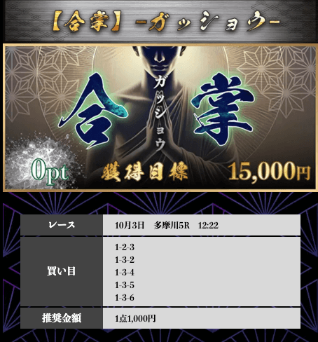 若干混乱しますが、無料予想の推奨投資金額はプランの詳細通りなので、1点1,000円で勝負するのがベストだと思います。