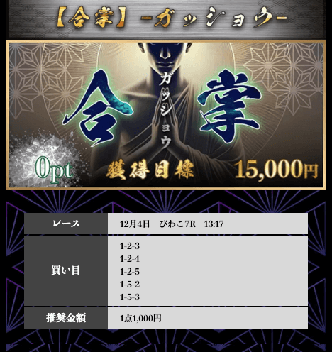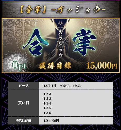 ’25/12/01 的中無料予想で6,800円獲得