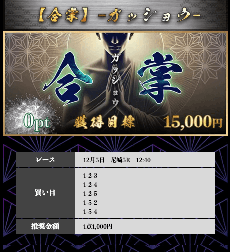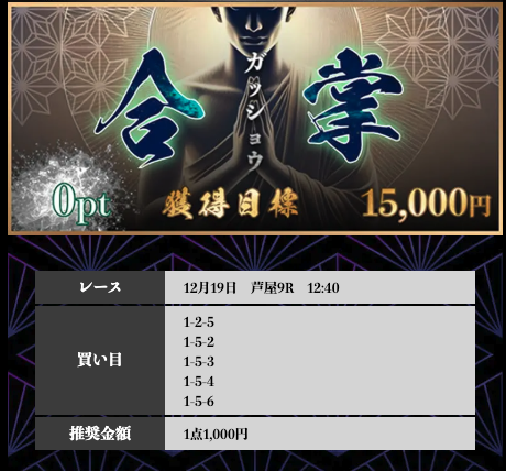 ’25/12/05 的中無料予想で7,400円獲得