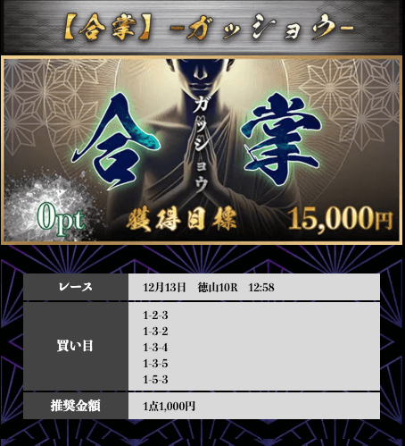 ’25/12/13 的中無料予想で9,900円獲得