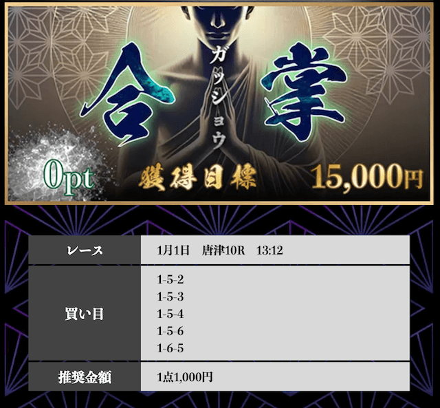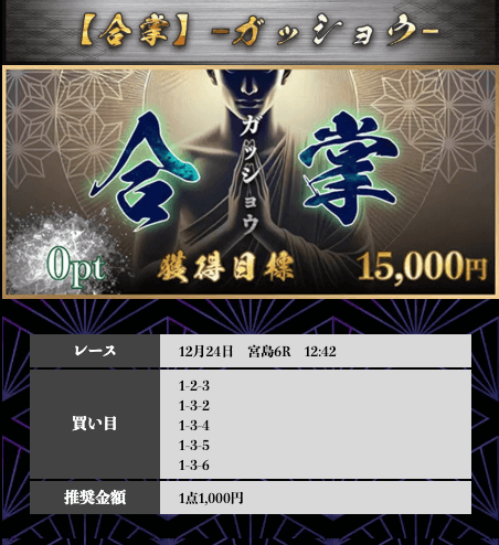 ’25/12/24 的中無料予想で5,800円獲得