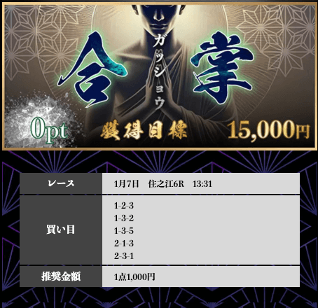 ’25/07/15 的中無料予想で6,100円獲得