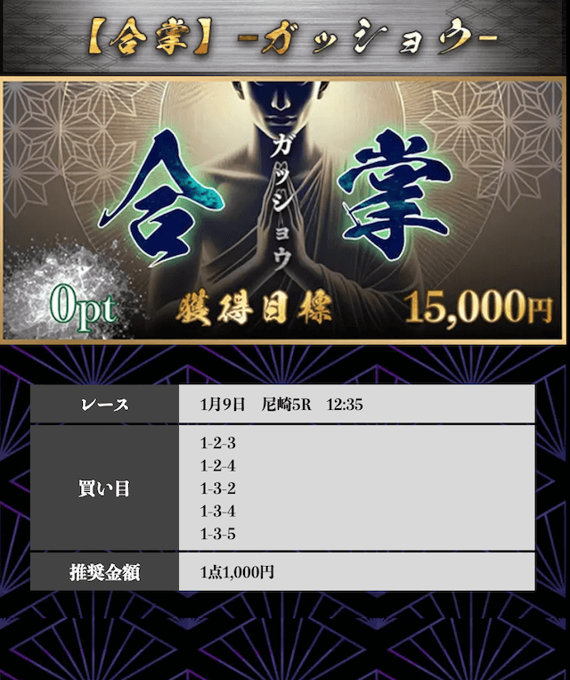 ’25/09/05 的中無料予想で12,000円獲得
