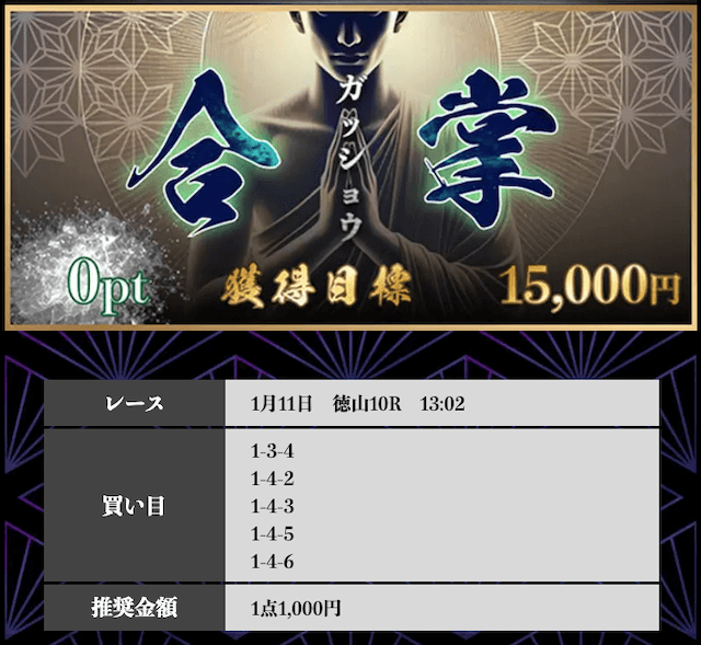 ’25/10/02 的中無料予想で11,000円獲得