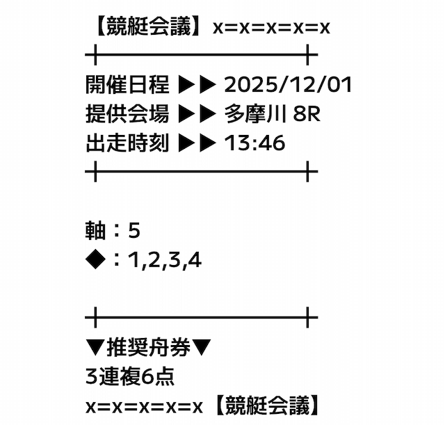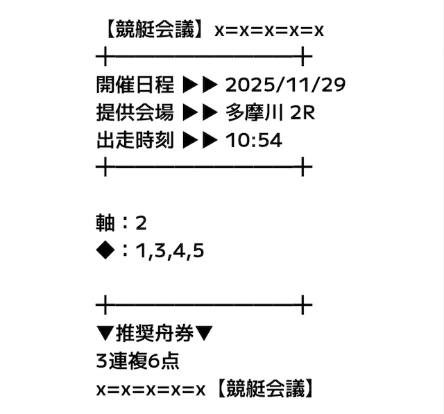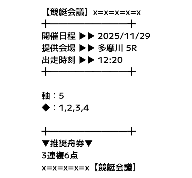 初検証日の2025年11月24日に公開された、多摩川6Rの予想は以下の通りです。