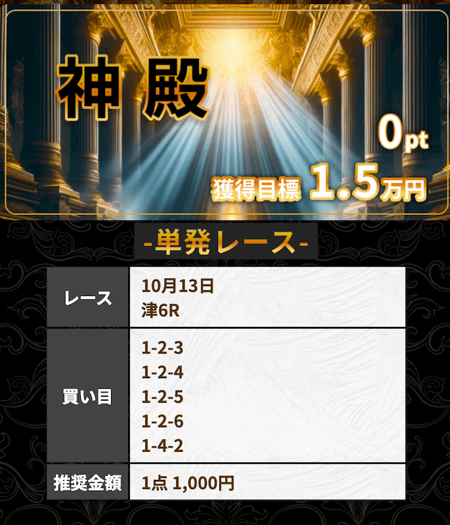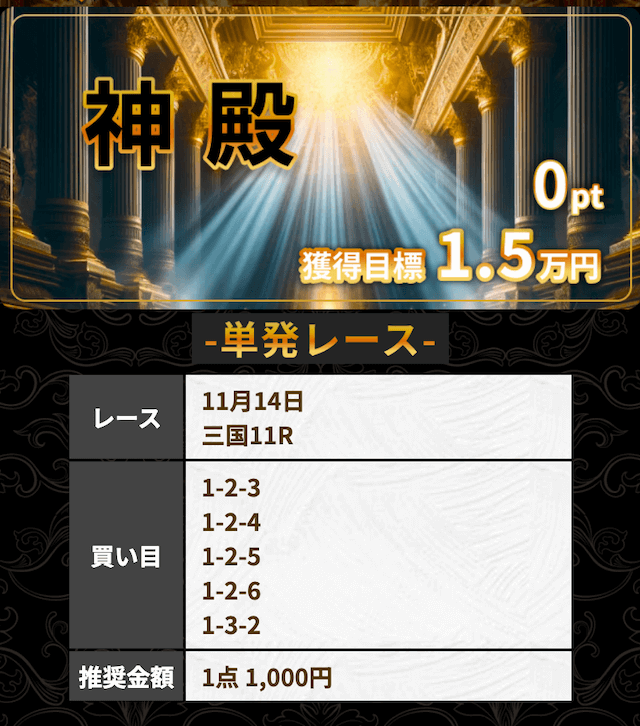 したがって、まずはお試しプランの「祭壇」「聖域」で参加し、勝った利益を使って「ヘラ」以外の通常プランで勝負するのが吉でしょう。