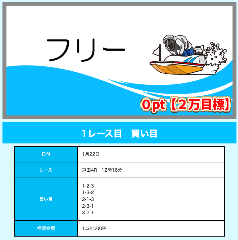 ’26/01/23 的中無料予想で59,600円獲得