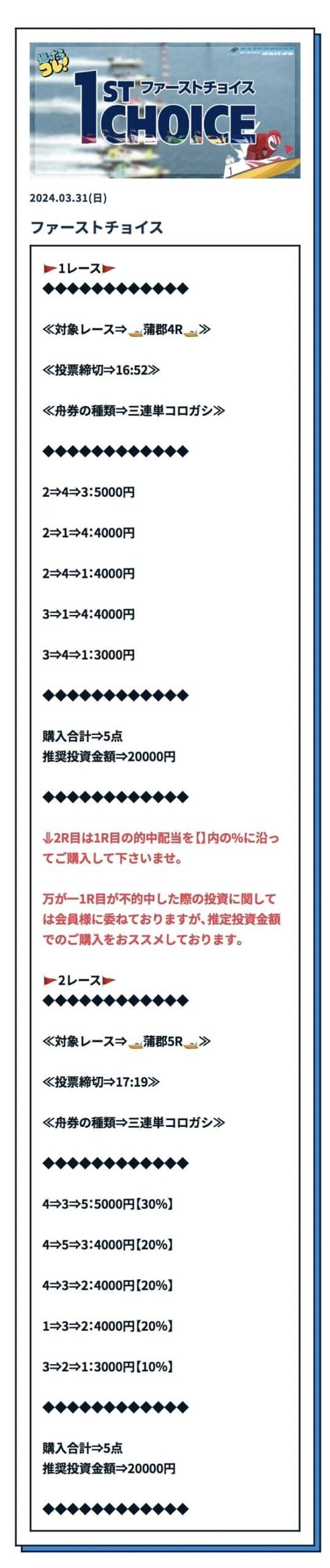 - 安定タイプ堅実なレース選びで的中率が高く、コツコツ稼げる競艇予想サイト