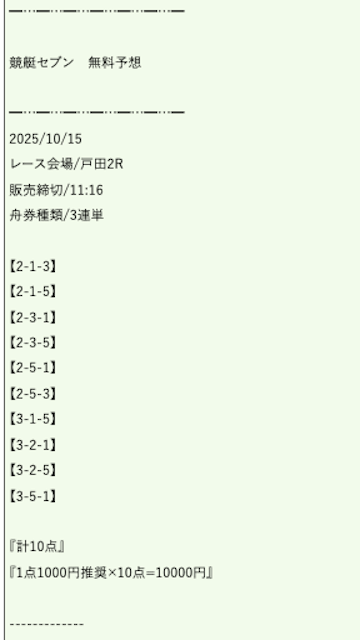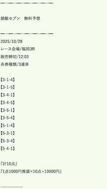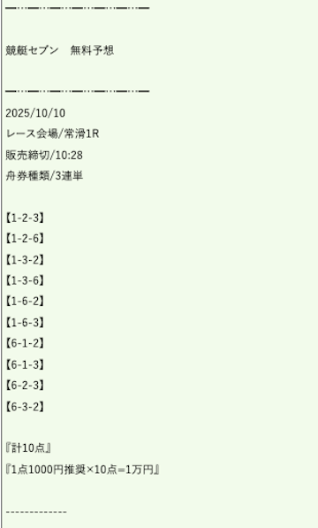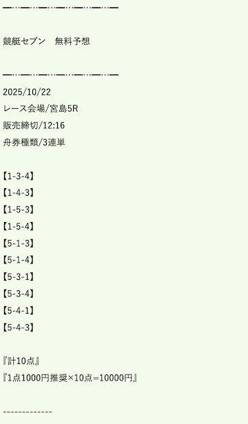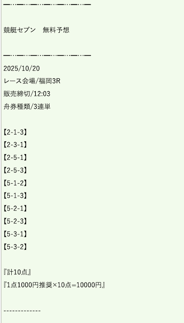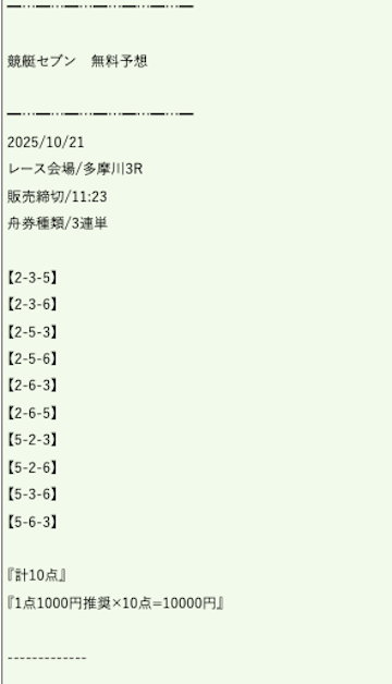 ’25/10/23 的中無料予想で43,800円獲得