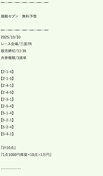 ’25/10/24 的中無料予想で58,000円獲得