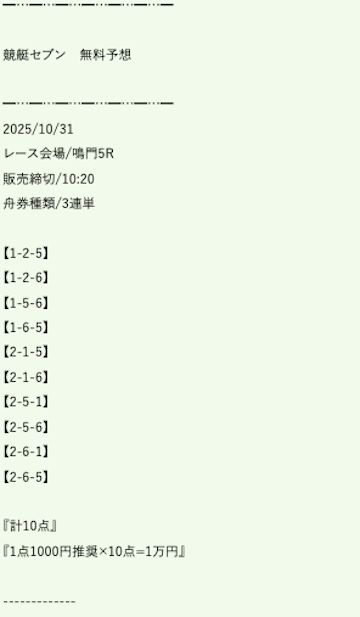 ’25/10/17 的中無料予想で26,500円獲得