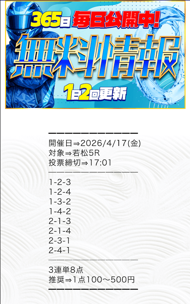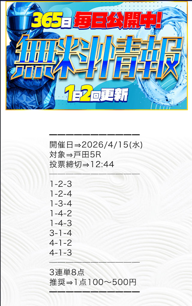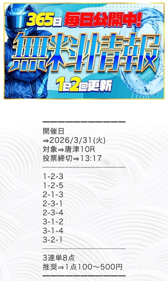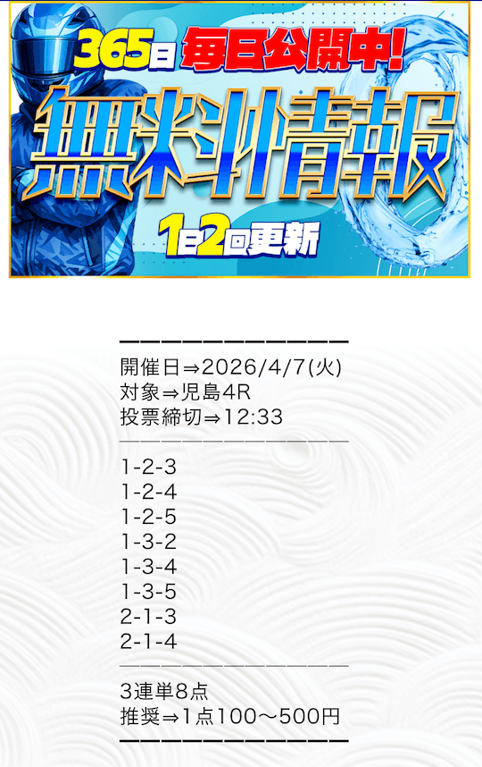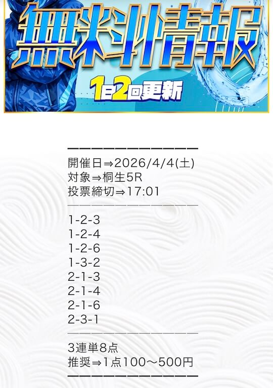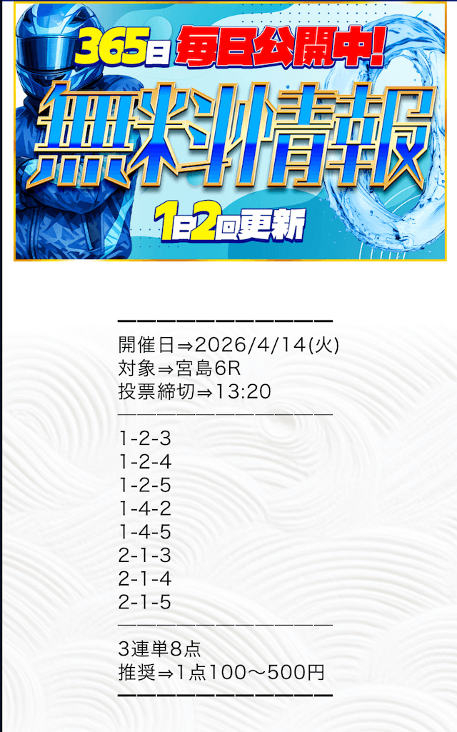 他予想サイトより舟券代が安いから使ってみたけど、リスクヘッジの安さなんかな