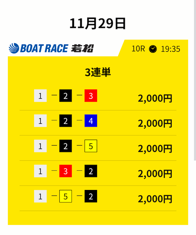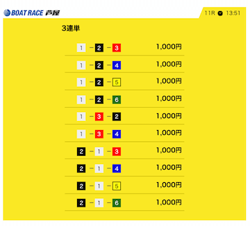 | ①-⑤-⑥ | 25.0倍 | 2,000円 | 50,000円 |