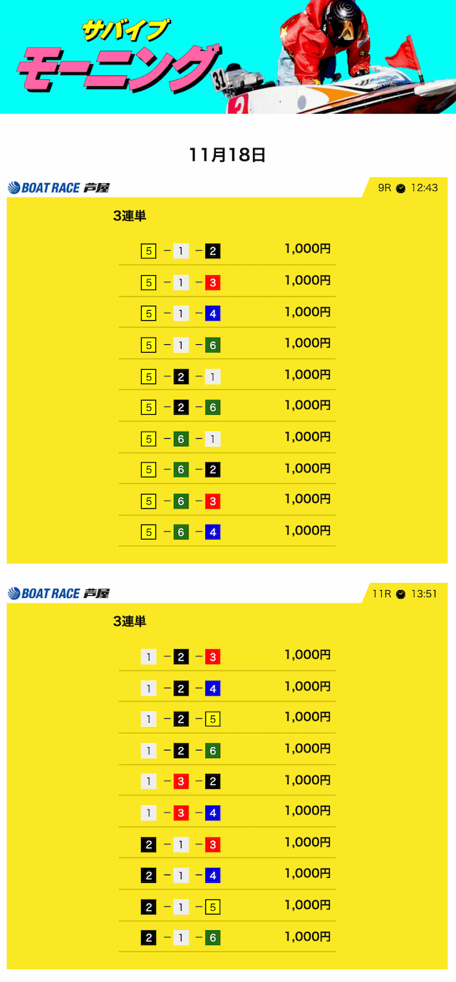 ★★★★★ 5.02025/11/13競艇サバイバーの有料情報、マジで無駄がない。点数も絞られてて乗りやすいし、選ぶレースの質が高い。先週は2回参加してどっちも利益出てくれたし、これは継続して良さそう!