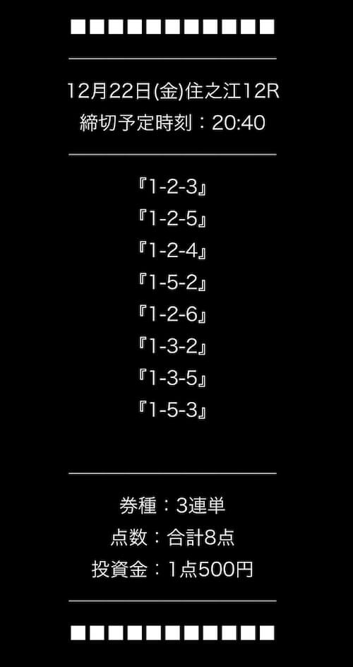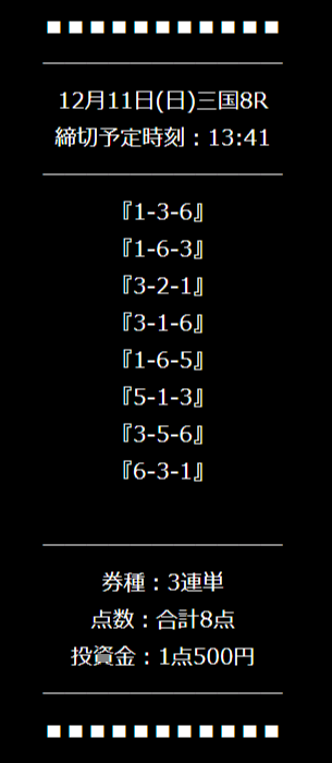 ’22/12/06 的中無料予想で12,350円獲得
